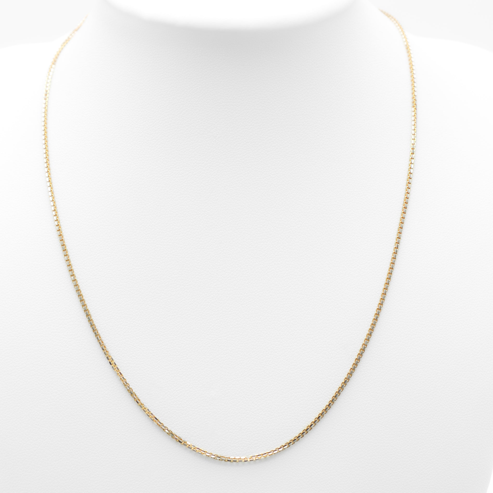 This two-tone, yellow and white 10K gold chain with 16" diamond-cut box links embodies two-tone radiance and refinement. Perfect for an elegant and sophisticated touch.