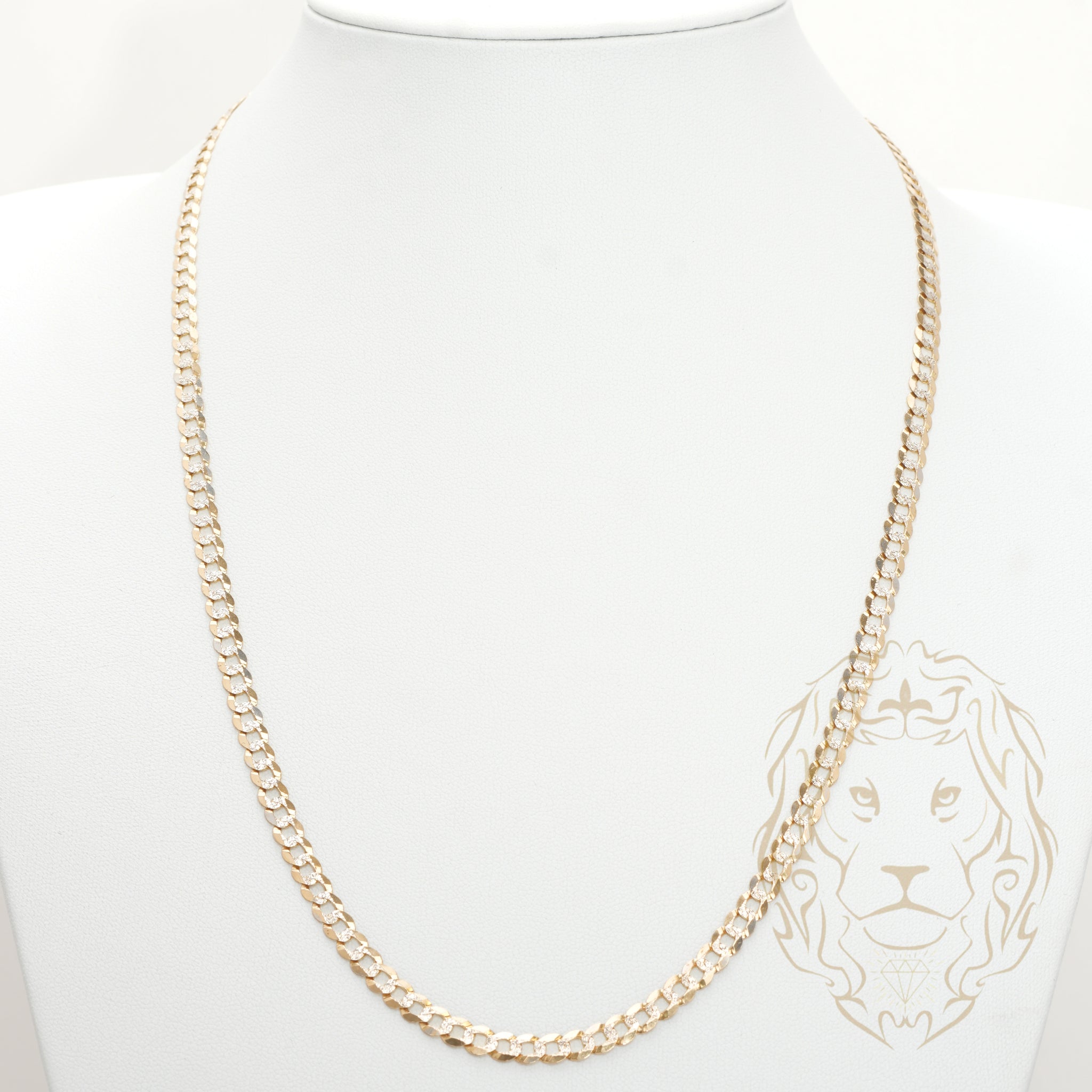 Cette chaîne curb 5.3mm en or 10K deux tons est taillée en diamant pour une brillance exceptionnelle, idéale pour un look audacieux.