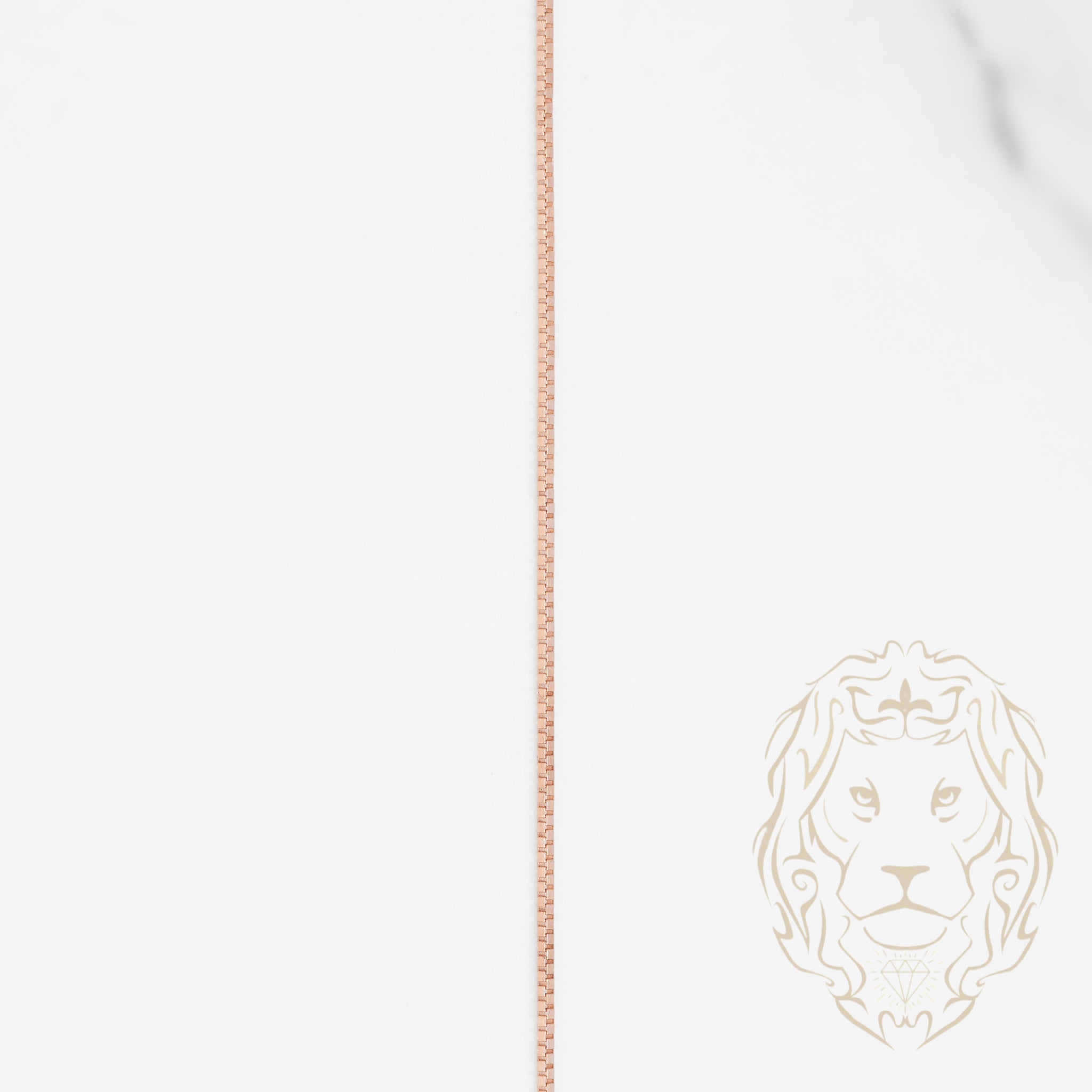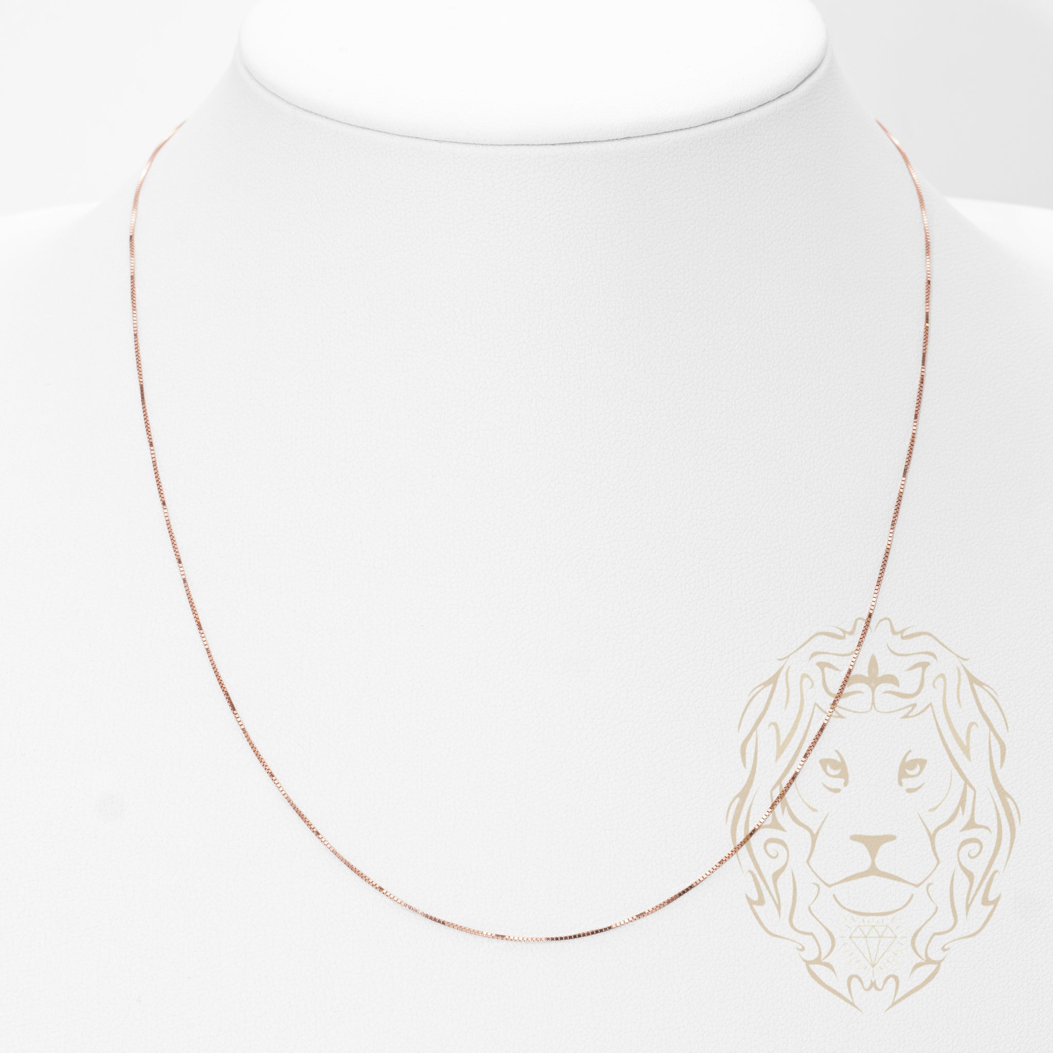 Une chaîne boîte ultra-fine en or 14K rose de 0.5mm, idéale pour une touche subtile ou un petit pendentif délicat.