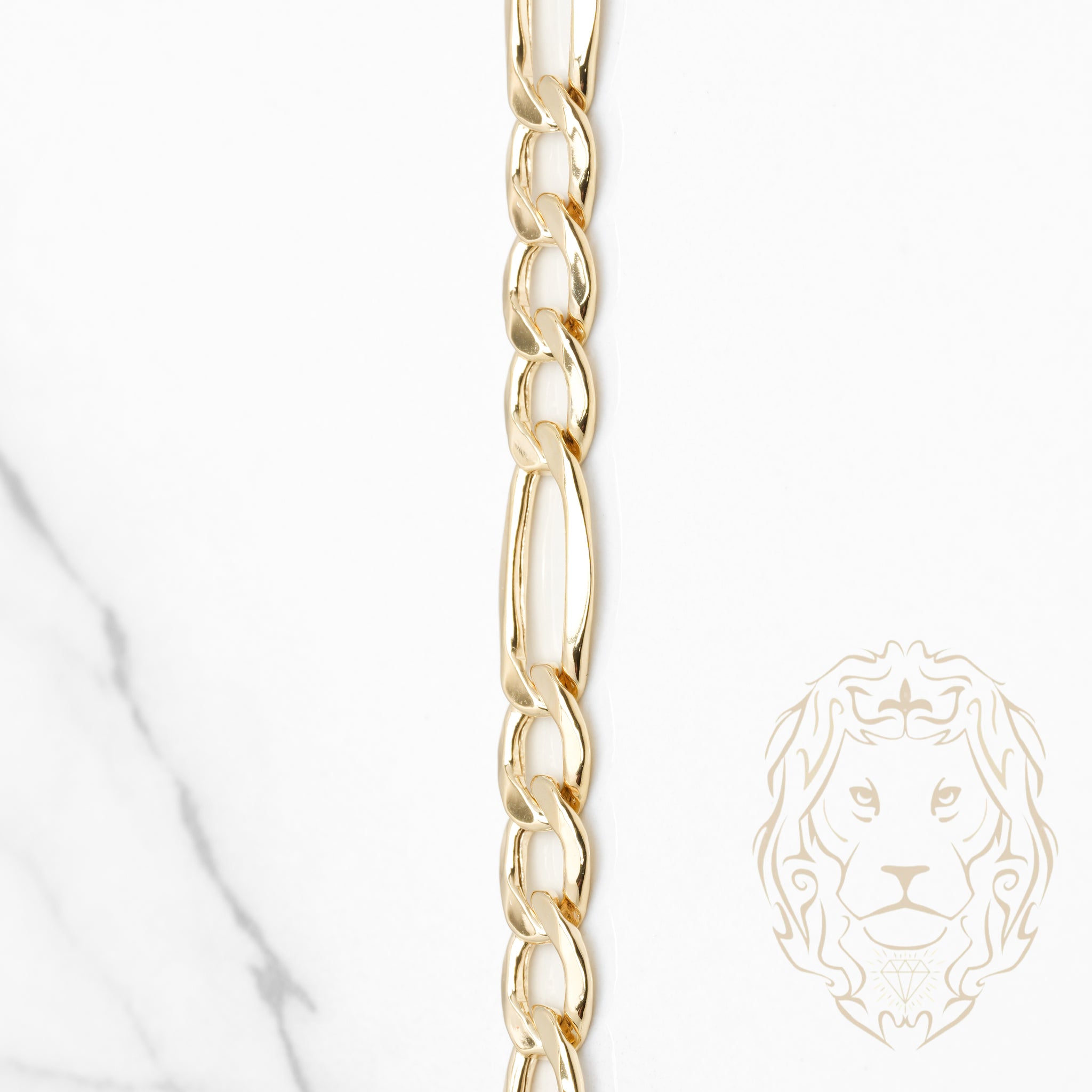 Chaîne Figaro 6.6mm en or 10K jaune, au design classique et luxueux. Idéale pour ceux qui souhaitent une pièce distinctive, durable et dotée d’une forte présence visuelle.