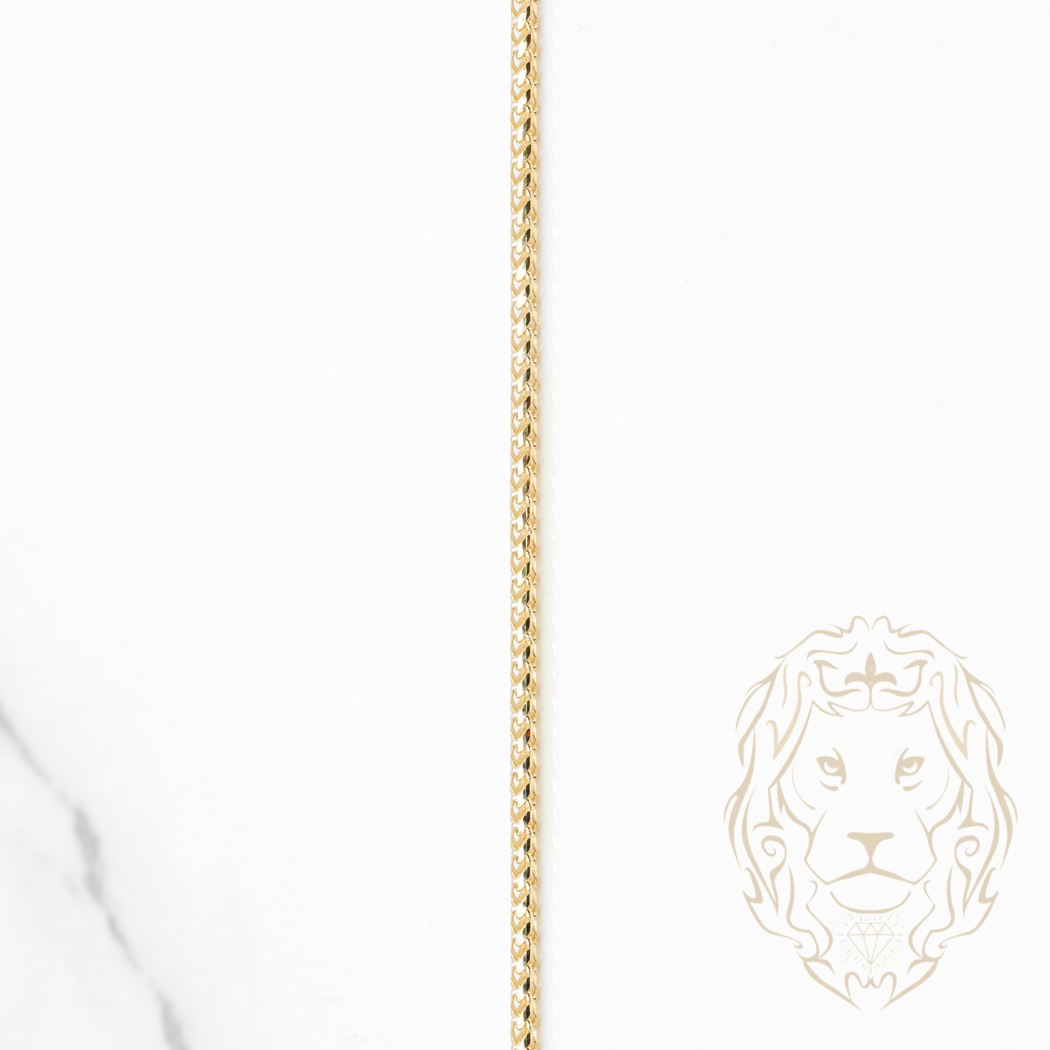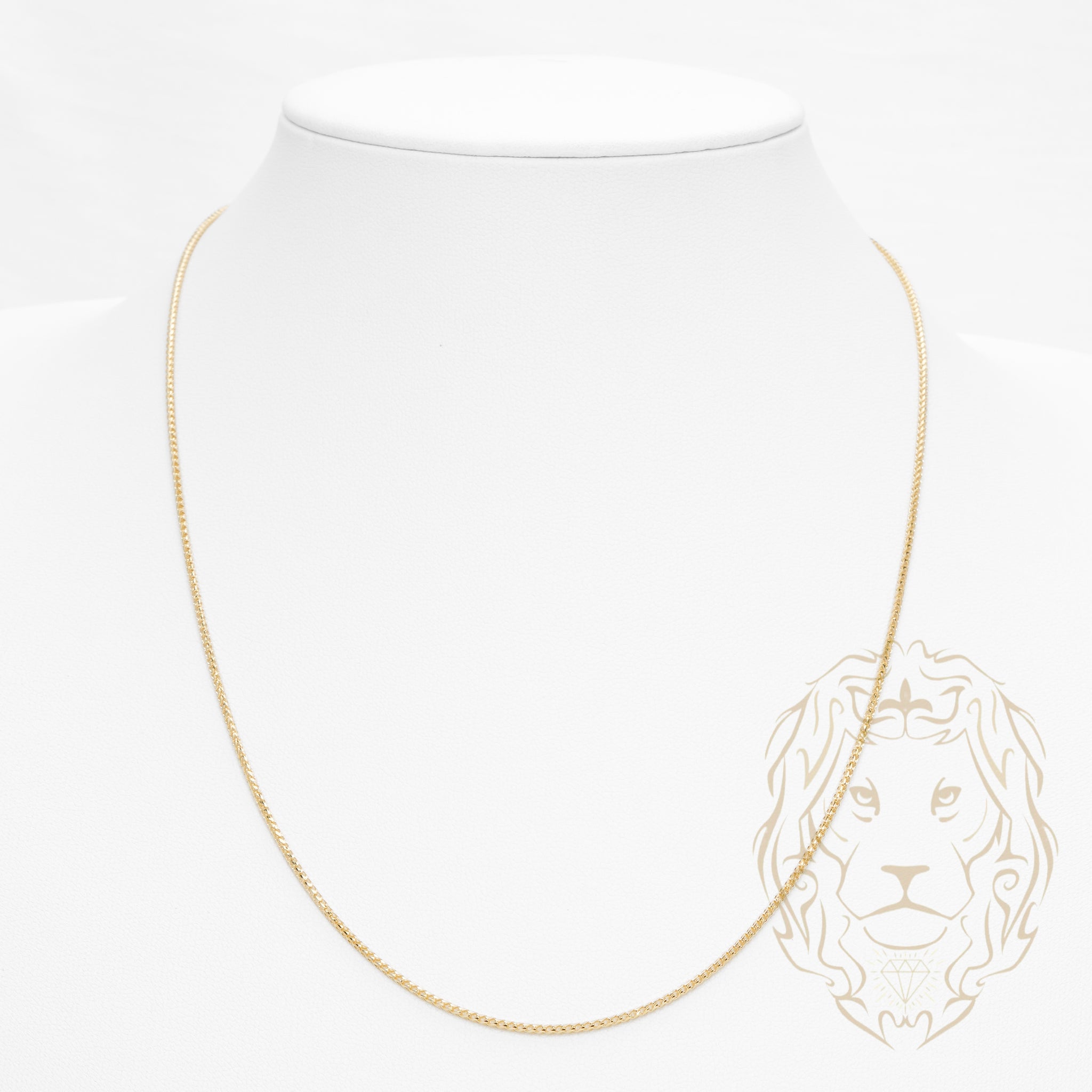 Cette franco solide 1.3mm en or 10K jaune présente un maillage précis et raffiné, idéal pour un port quotidien sans compromis sur la solidité.