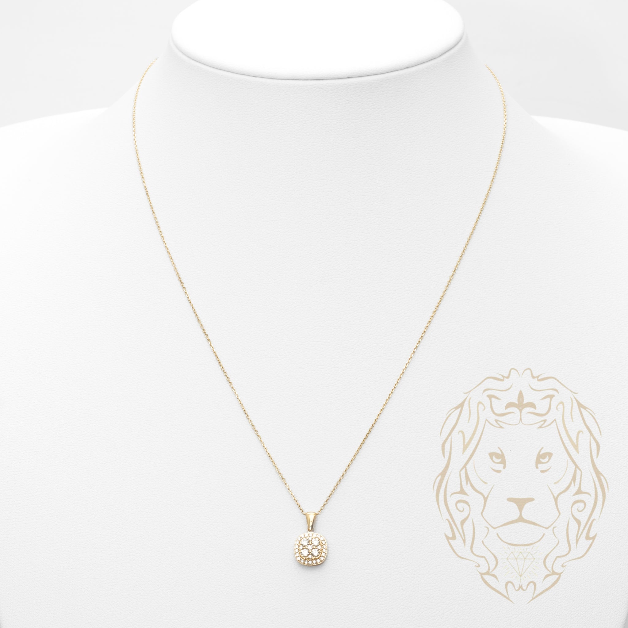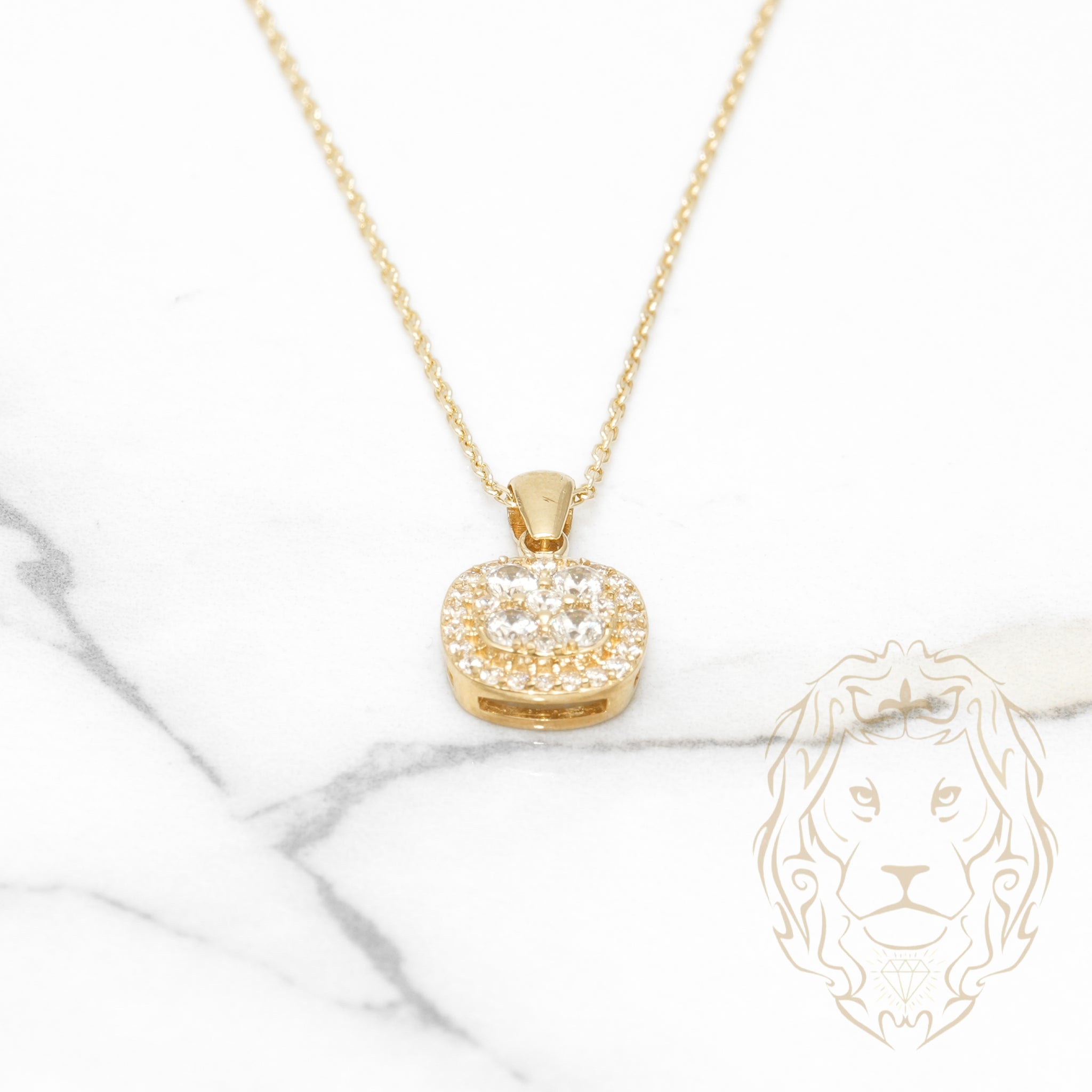 Woman's Necklace - 10K Yellow Gold Square Halo Pendant Pavé cz 18" - CHG460