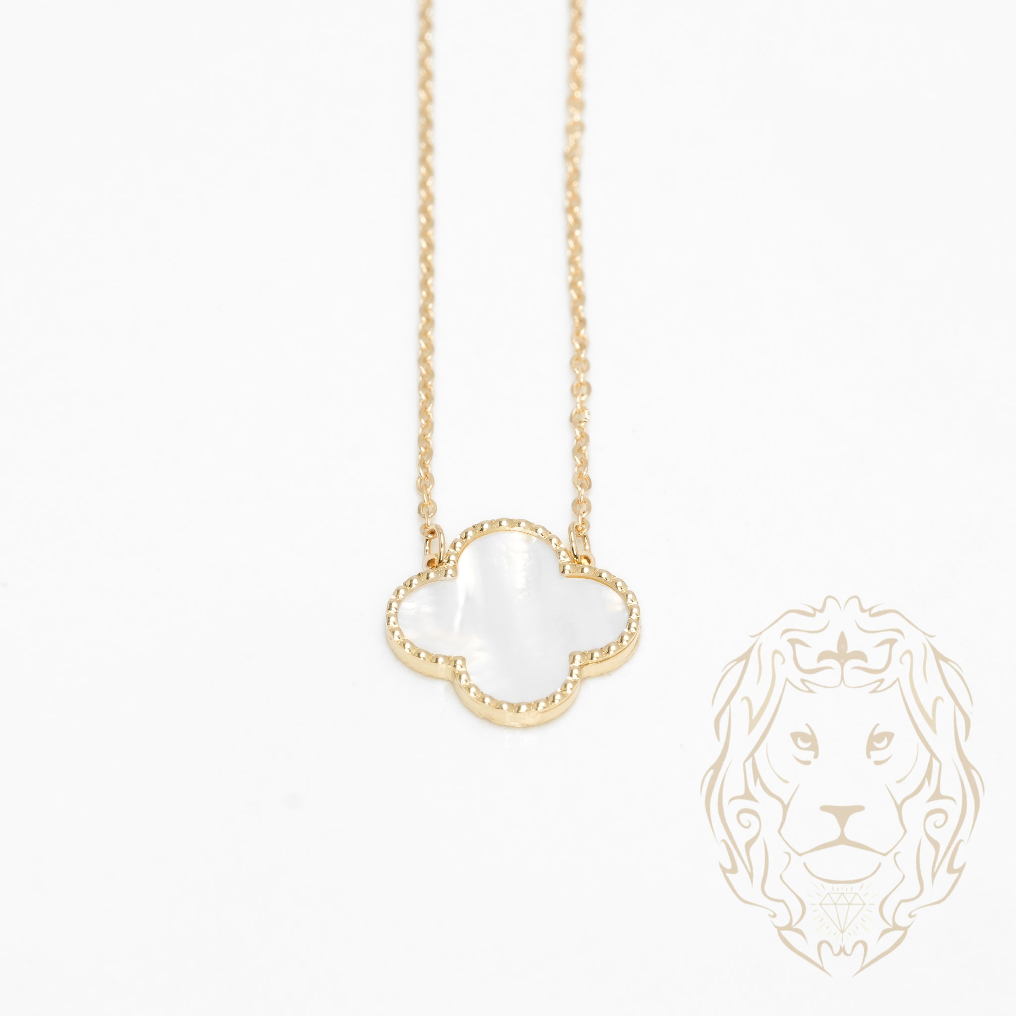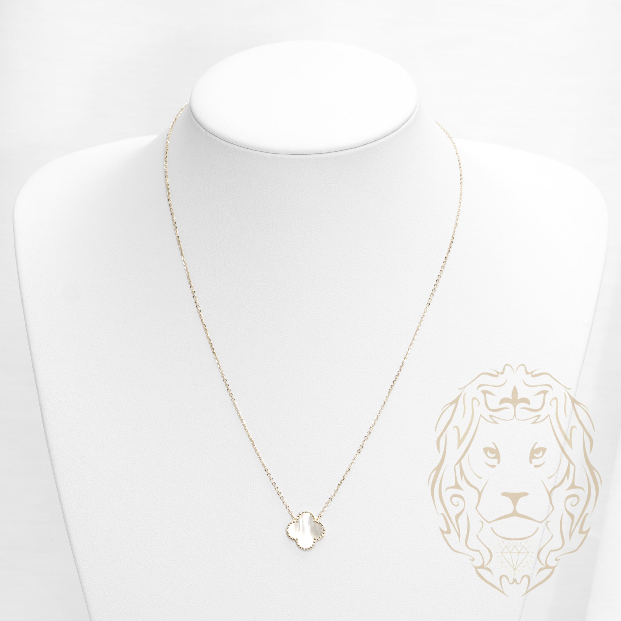 Collier en or jaune 10K avec pendentif trèfle en nacre de 14mm — une touche poétique et raffinée.