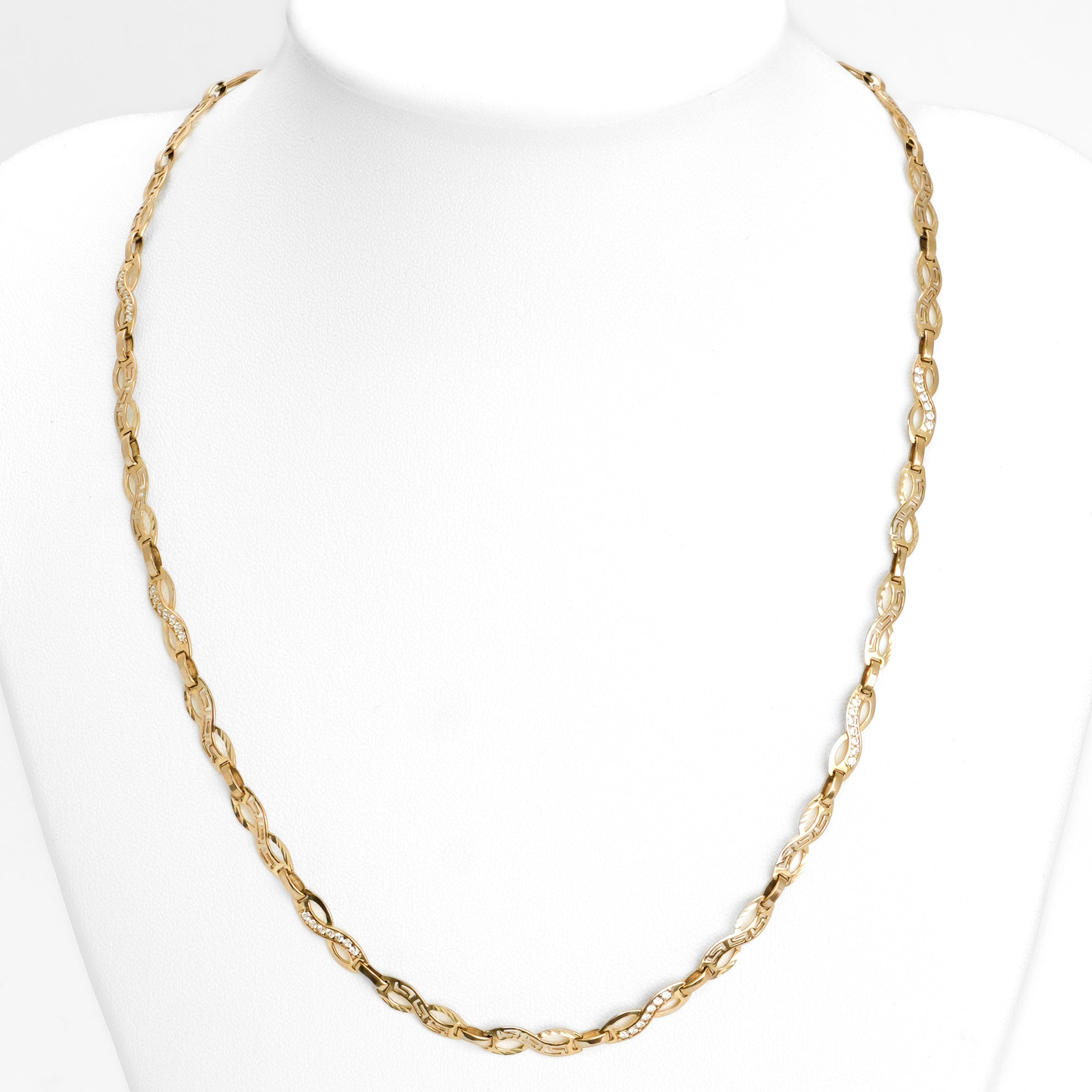 Woman's necklace - 10K yellow gold infinity links greek key cut diamond & cz pave 18" - CHG279