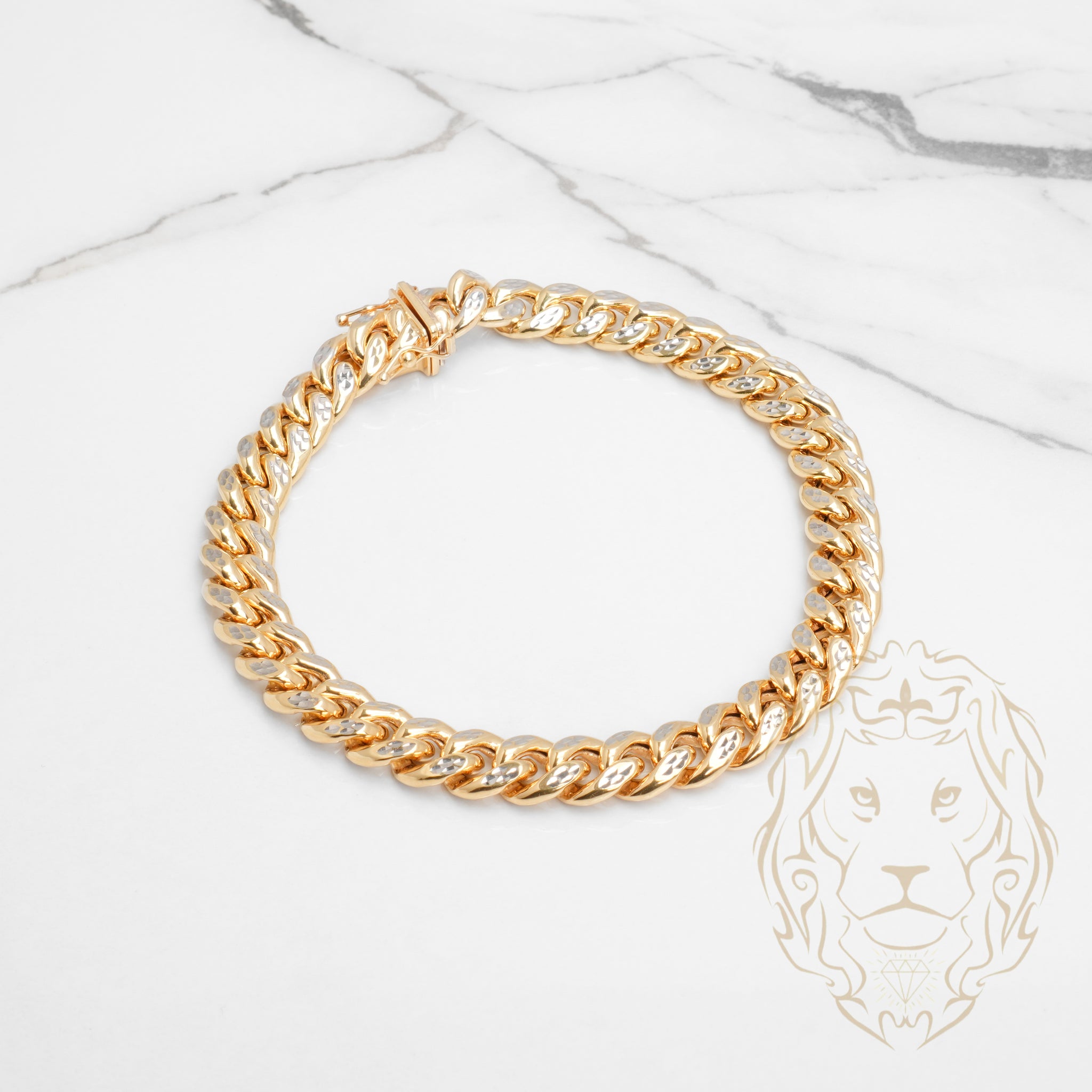 Bracelet cuban link en or 10K deux tons jaune et blanc de 8.5mm, un look riche et éclatant.