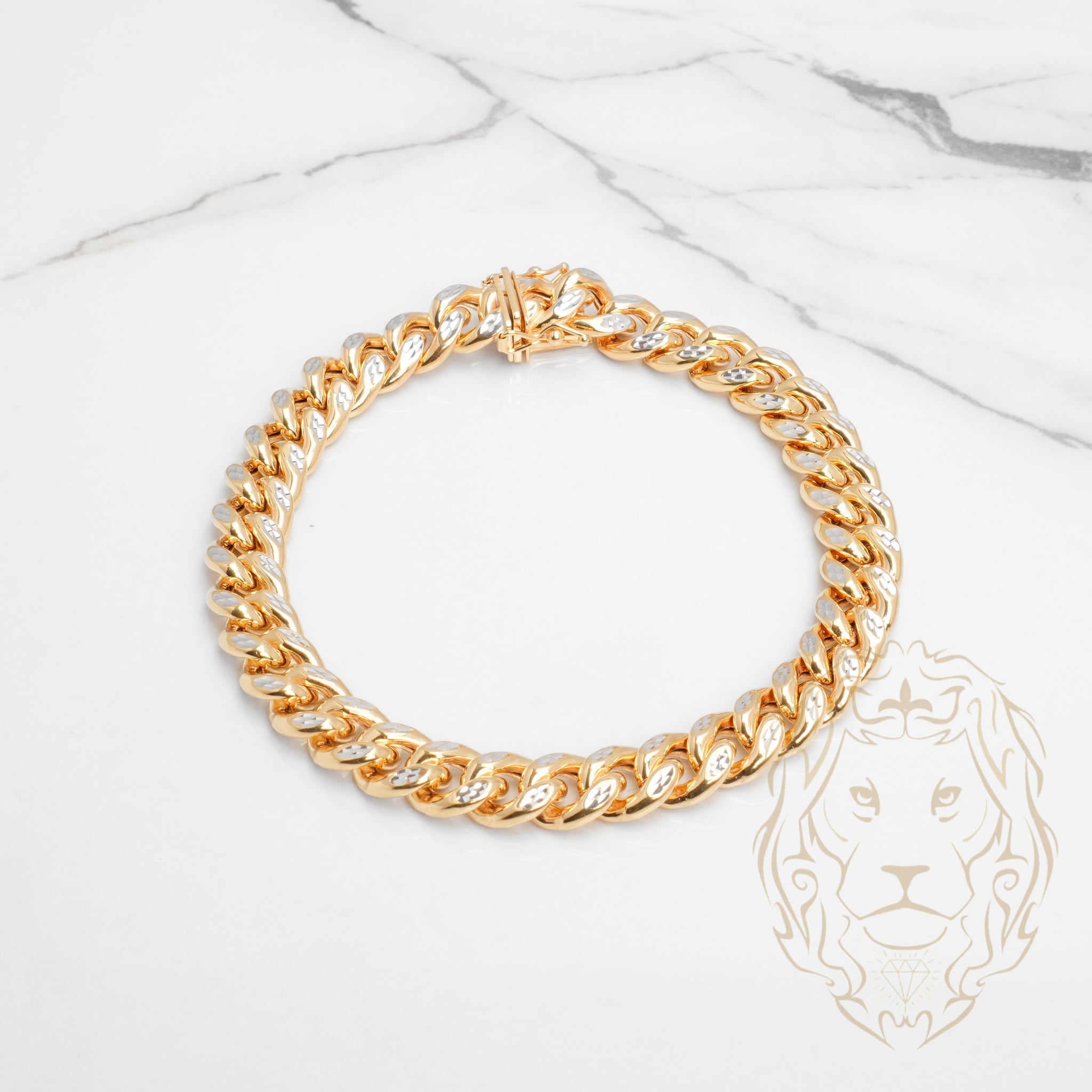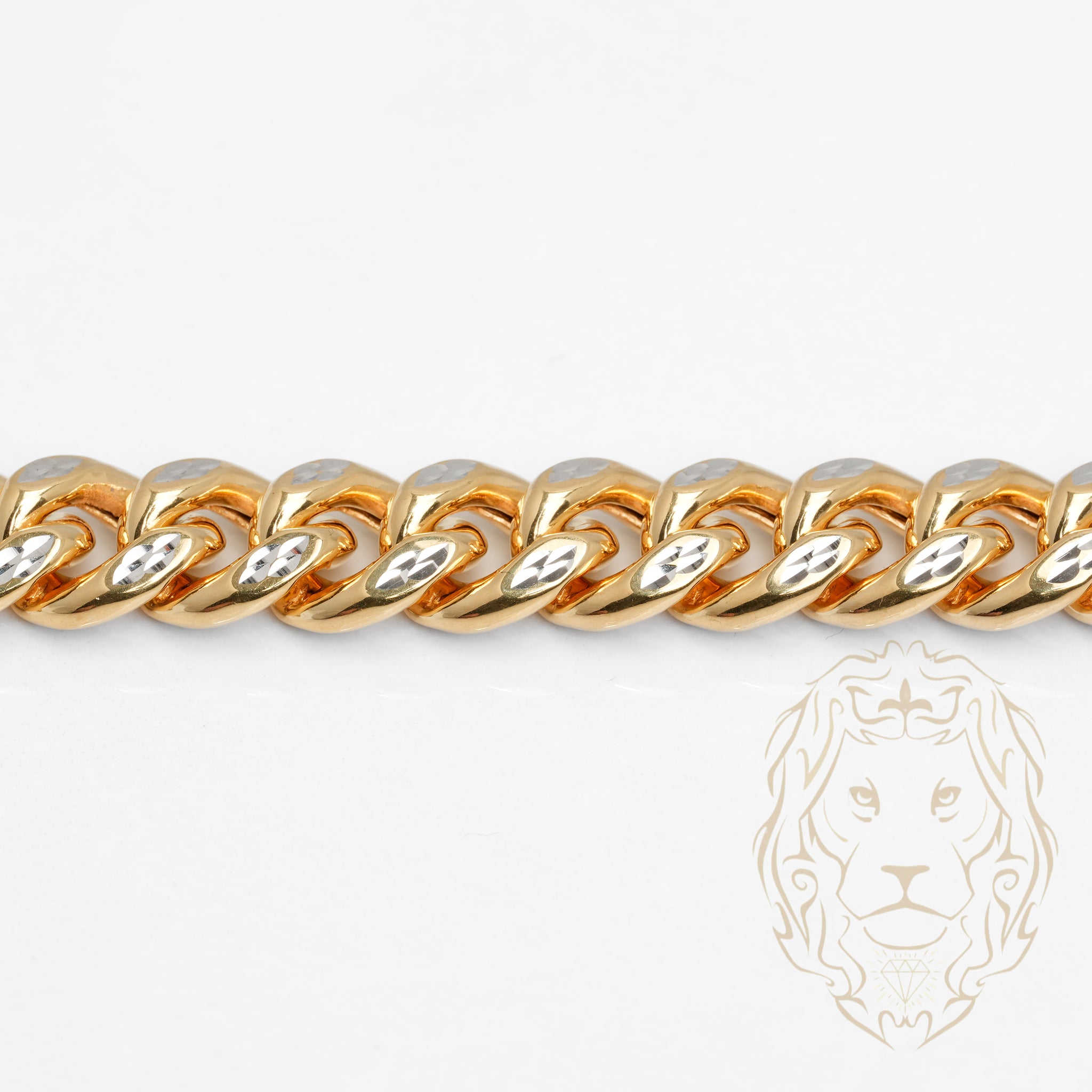 Bracelet cuban link en or 10K deux tons jaune et blanc de 9.2mm, un bijou imposant au fini remarquable.