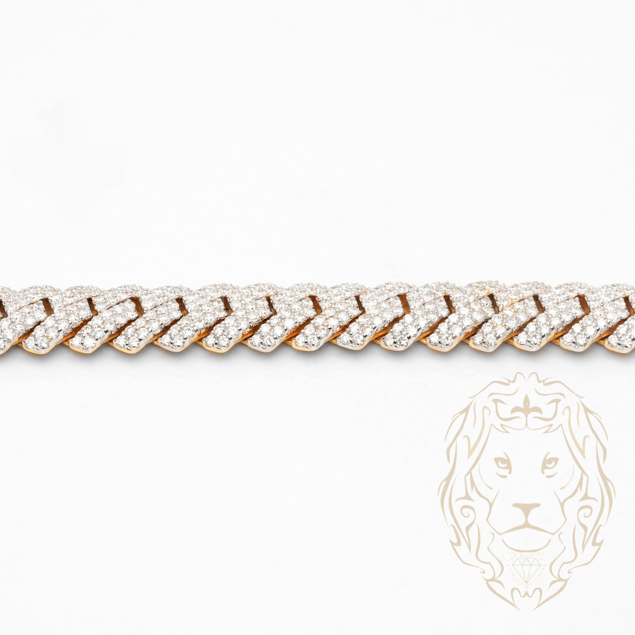 Bracelet cuban link 10mm en or bicolore 10K, sublimé par 8.32CTW de diamants lab VVS. Une pièce audacieuse au caractère affirmé.
