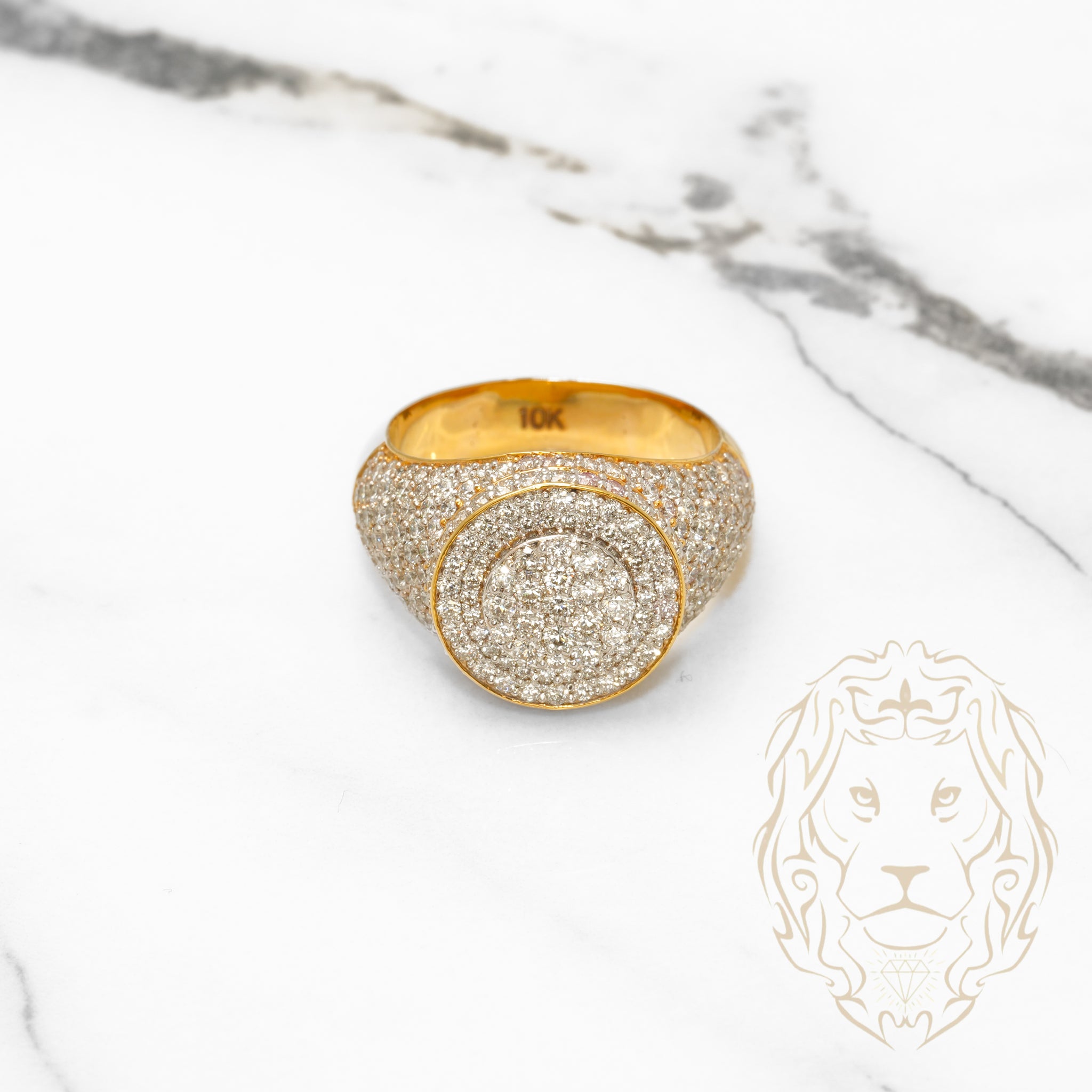This men's ring in 10K yellow gold is set with a 2.50-carat round pavement of natural diamonds, offering exceptional brilliance and assertive style.