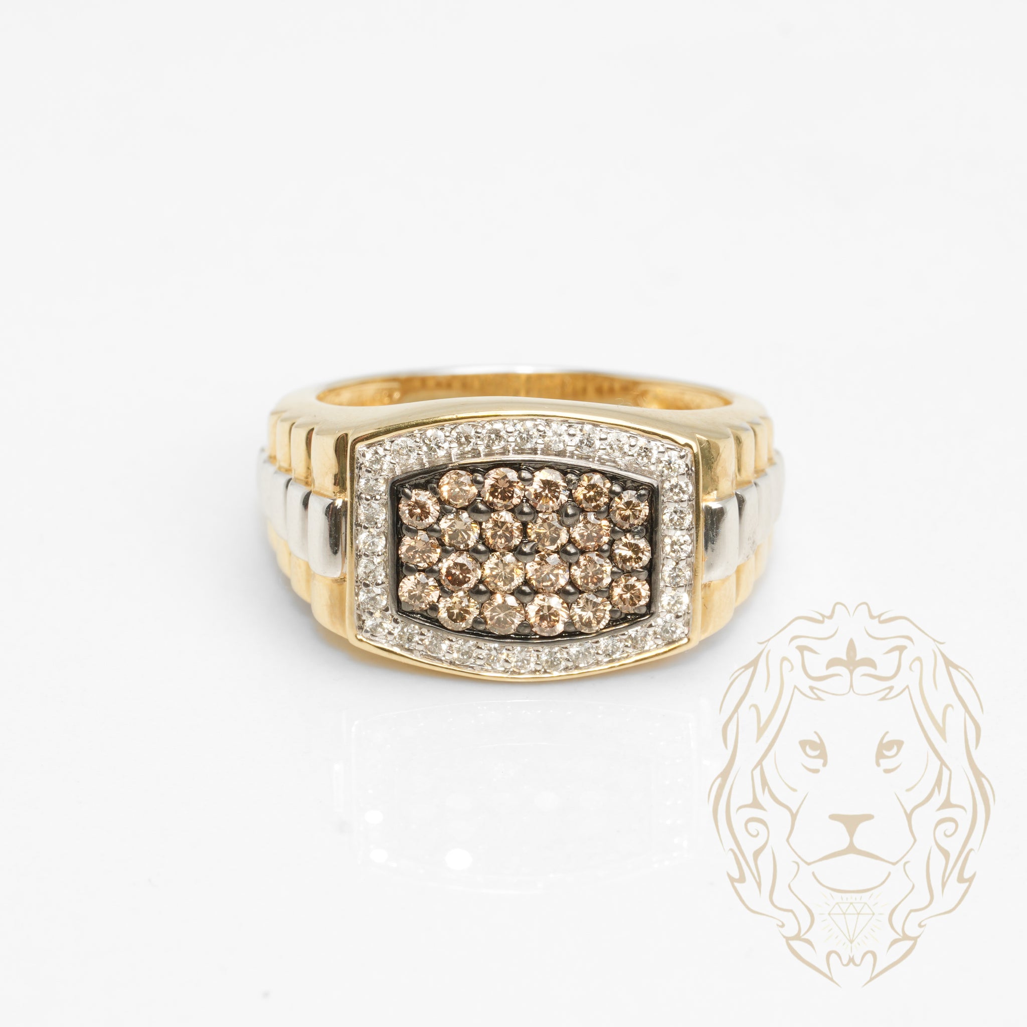 Ring - 10K two-tone yellow & white gold signet ring paved with natural diamonds 0.40CT & champagne 0.60CT - RIGD443