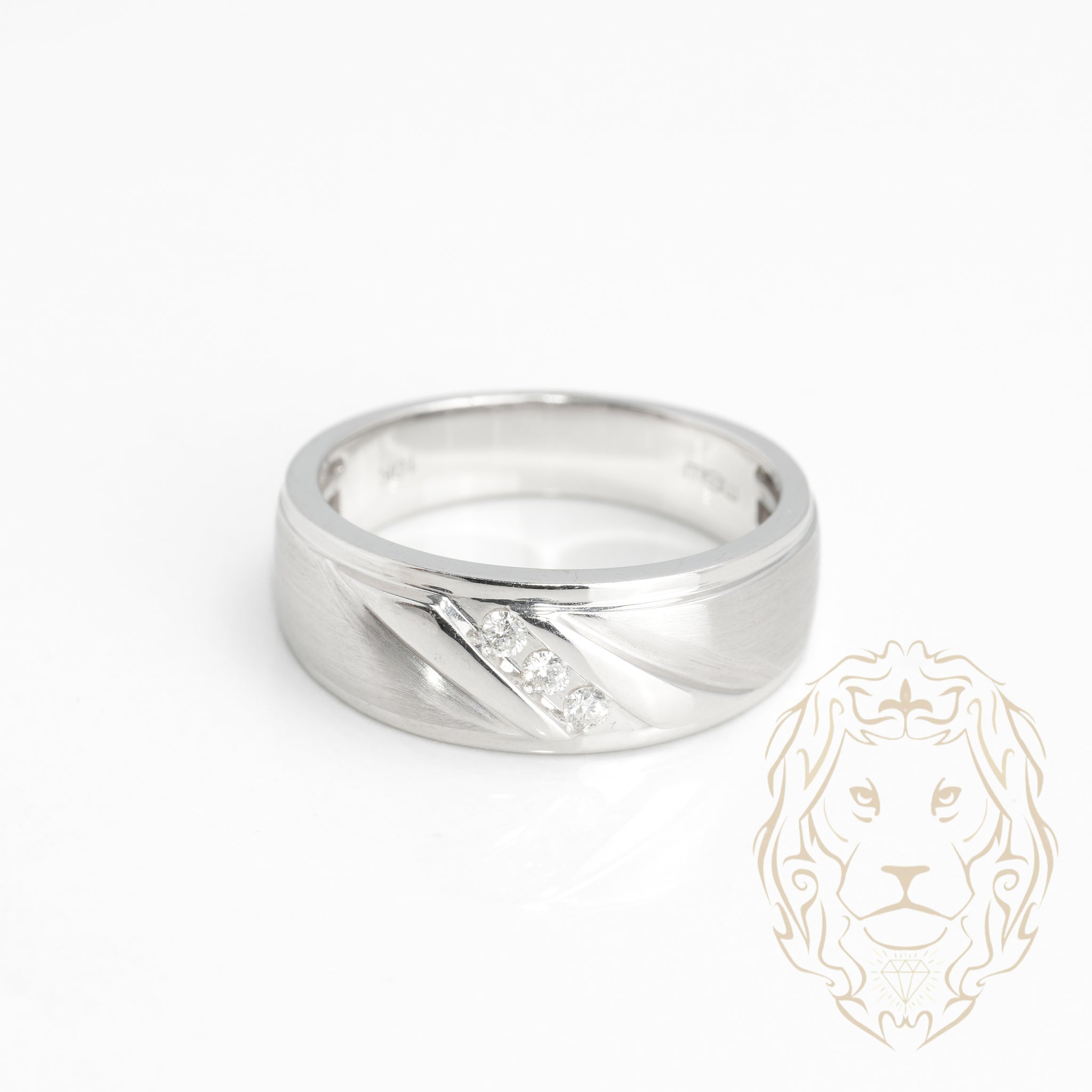 Wedding band ring - 10K white gold three 0.12CT natural diamonds satin finish - RIGD365