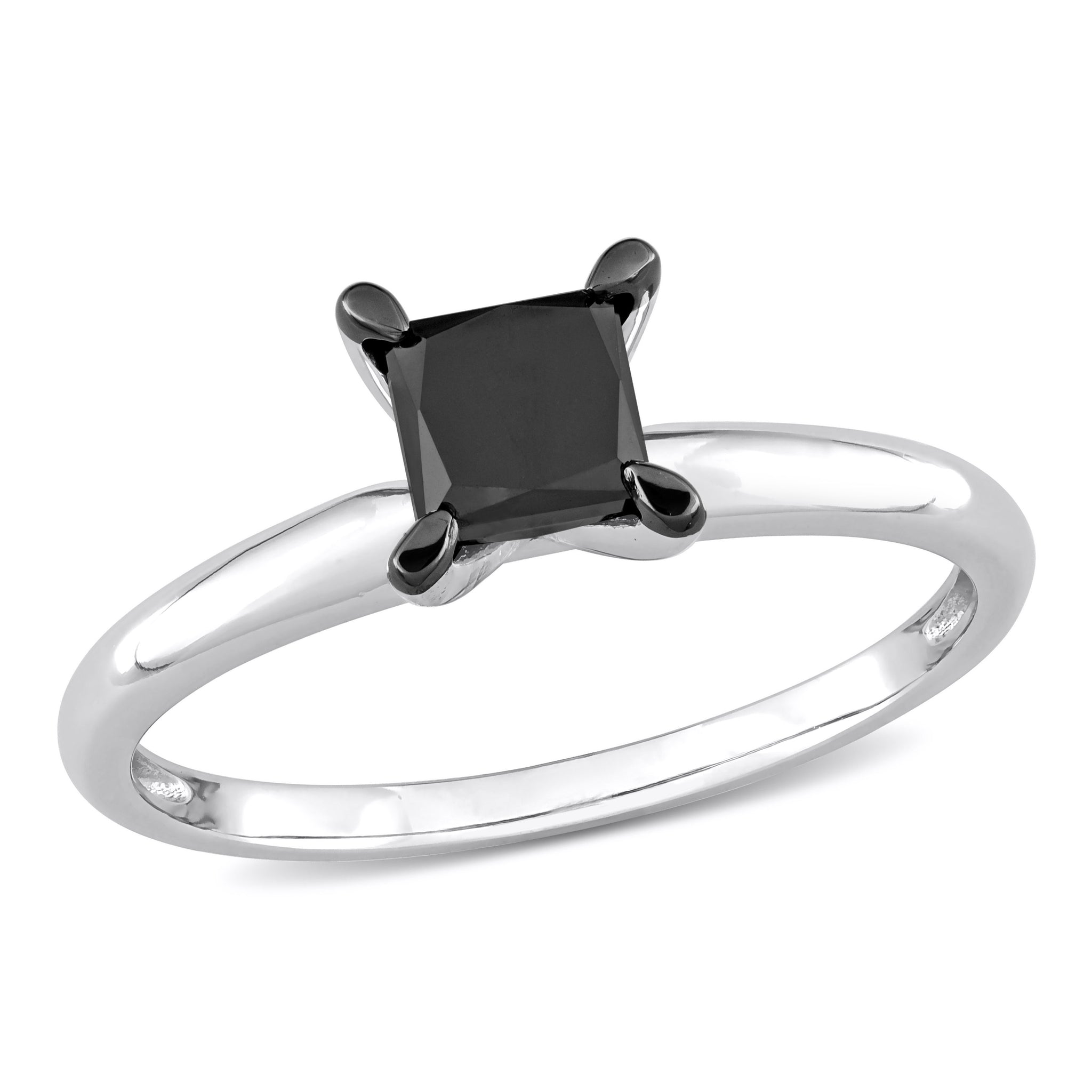 Bague - Or 14K blanc solitaire diamant naturel noir coupe radiant 1.00CT - RIGD053