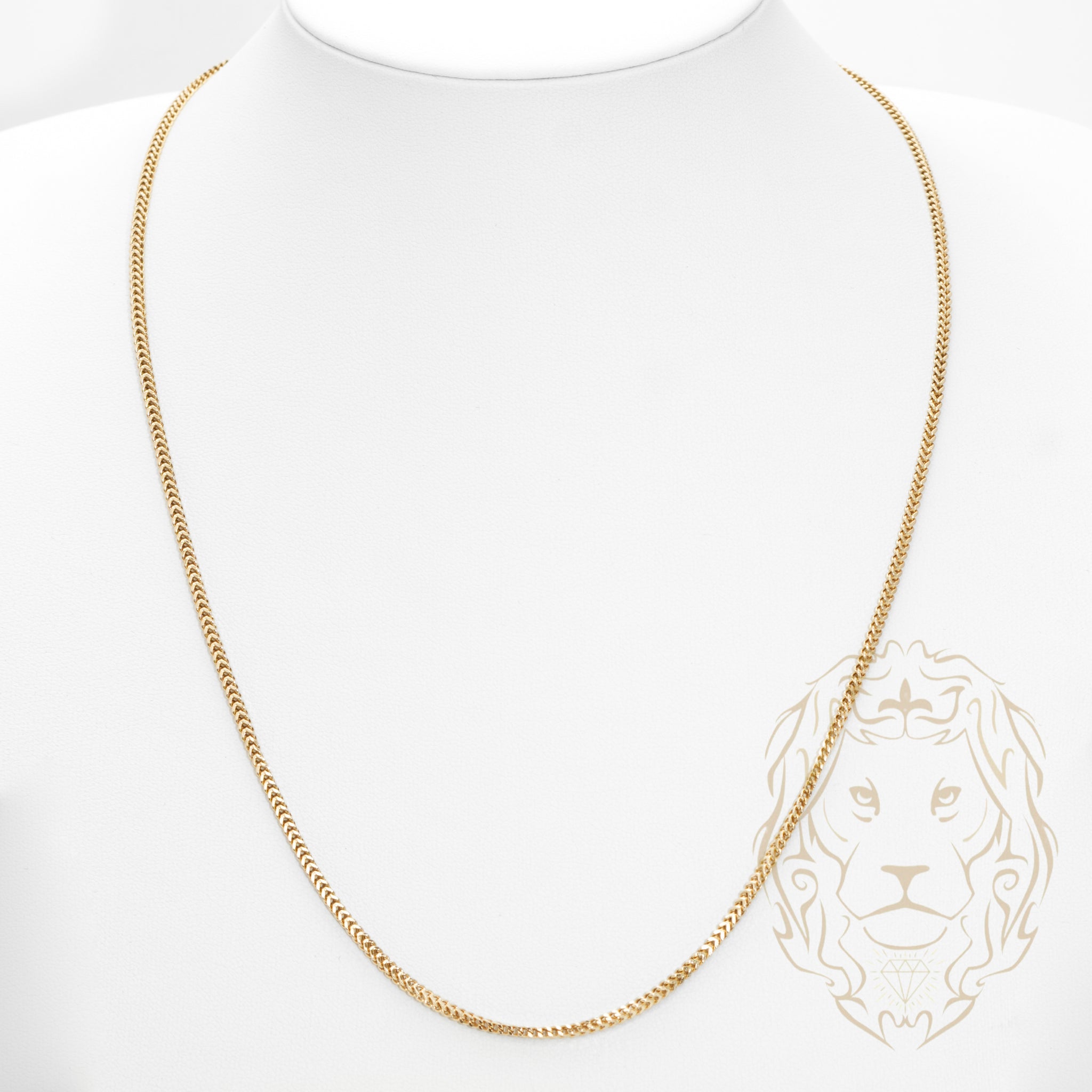 Chaîne franco en or jaune 10K 2.4mm, alliant résistance et éclat naturel pour un style quotidien distingué.