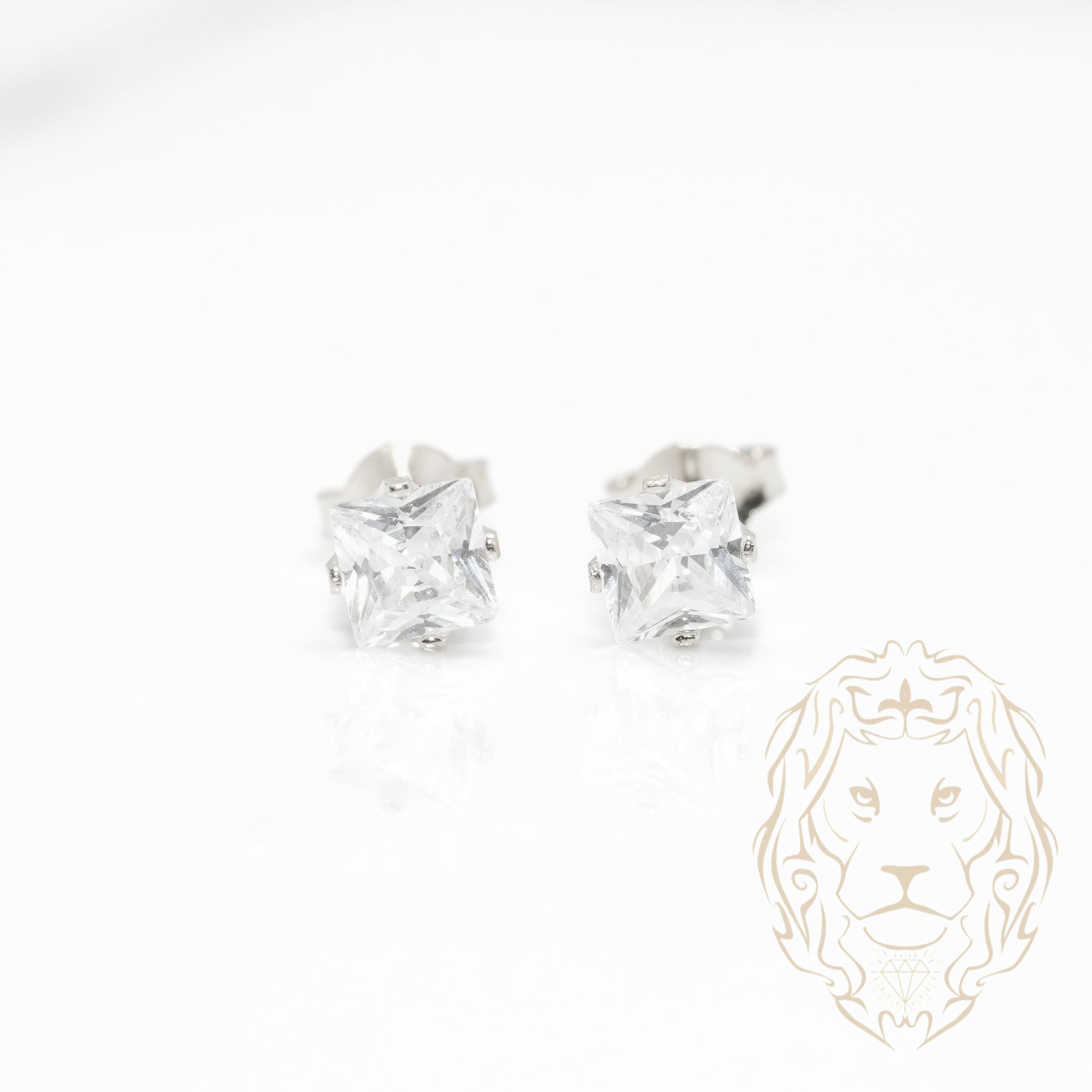 Studs en argent avec zircone cubique 0.10PTS, coupe princesse 3.7mm – une géométrie élégante tout en finesse.