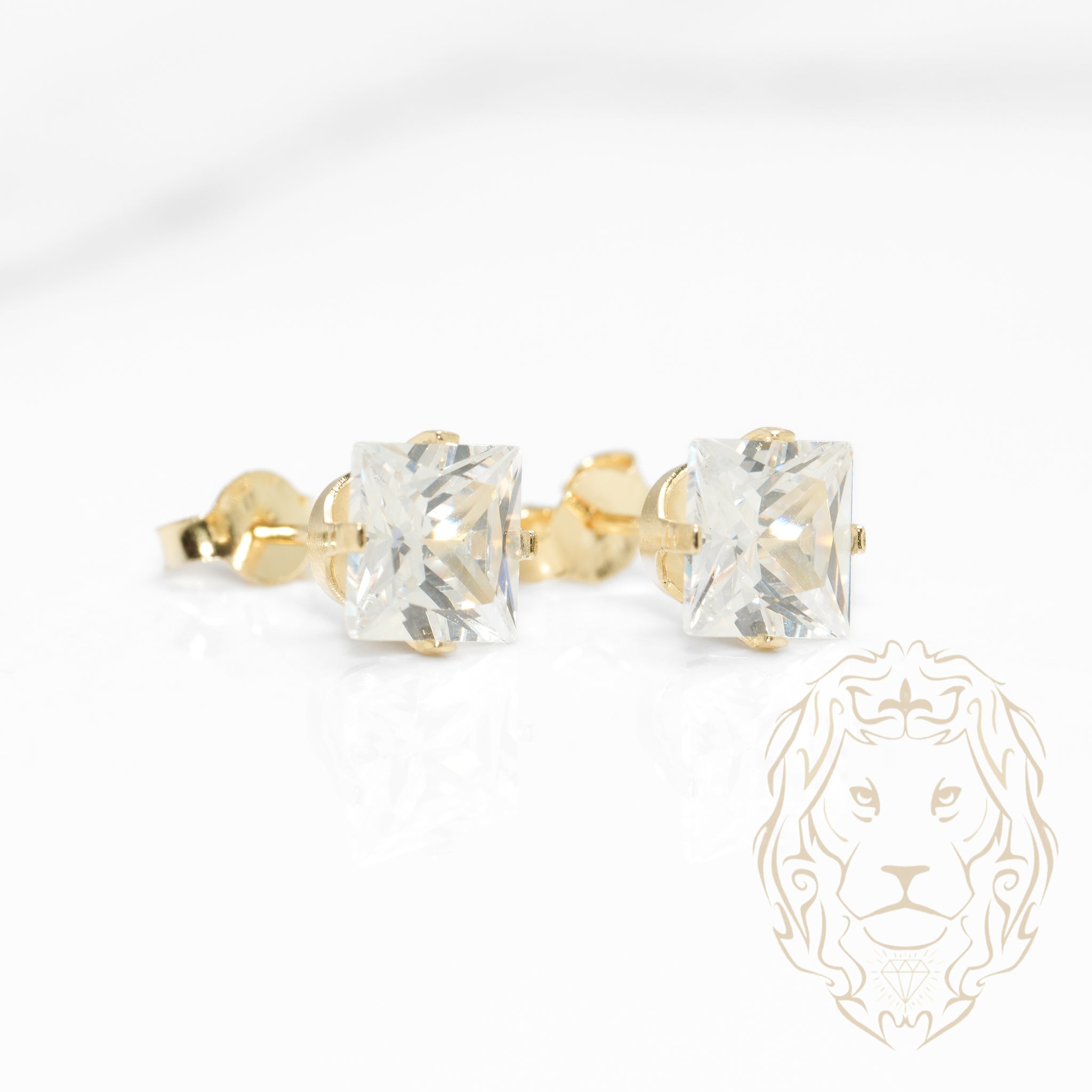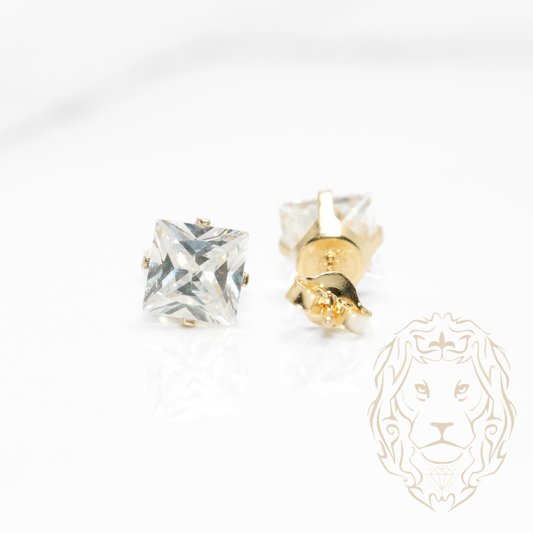 Boucles d’oreilles en or jaune 10K avec pierres de 4.5mm coupe princesse, sophistiquées et modernes.