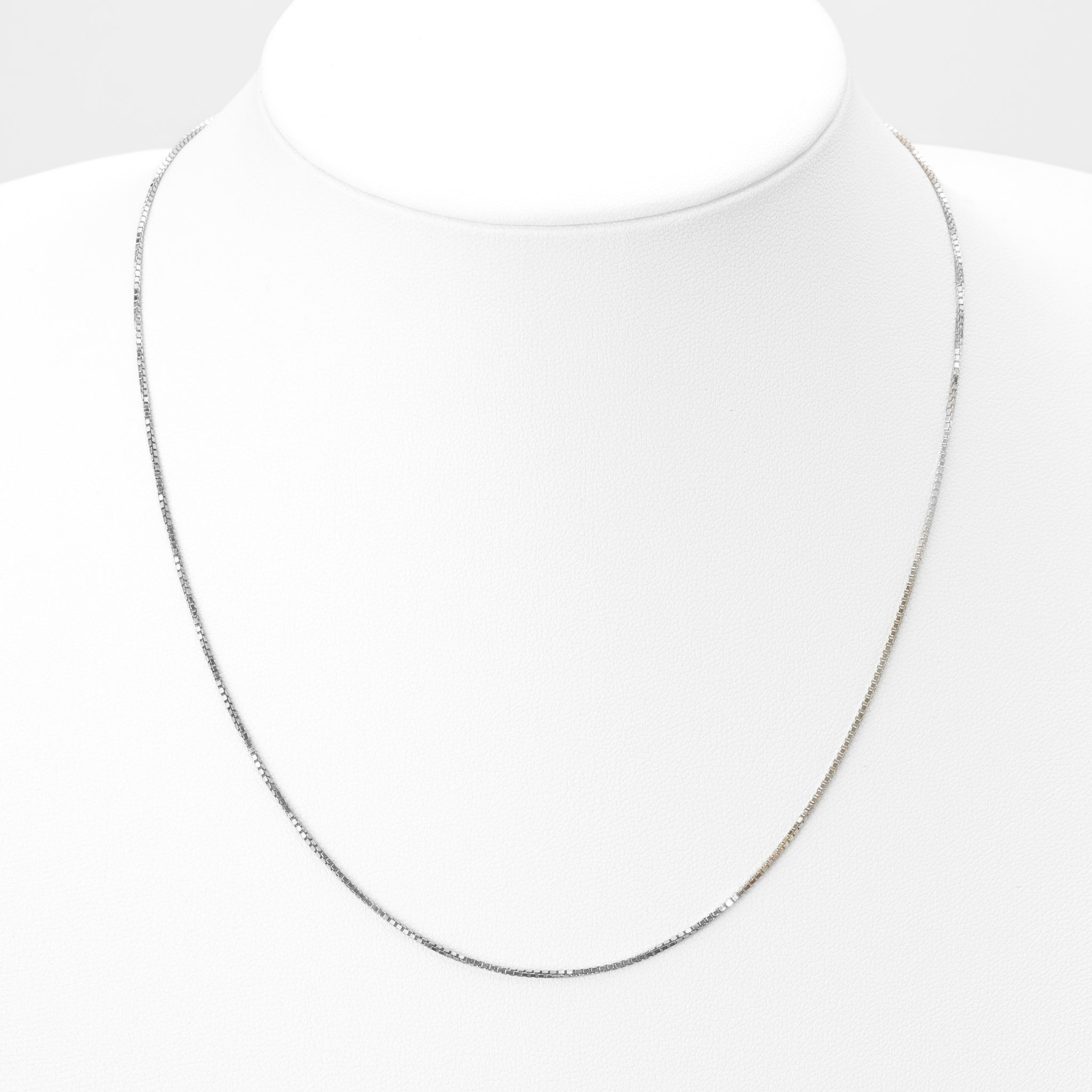 With 1mm box links, this silver chain is perfect for simple, elegant style. At 18", it fits perfectly to accompany a delicate pendant.