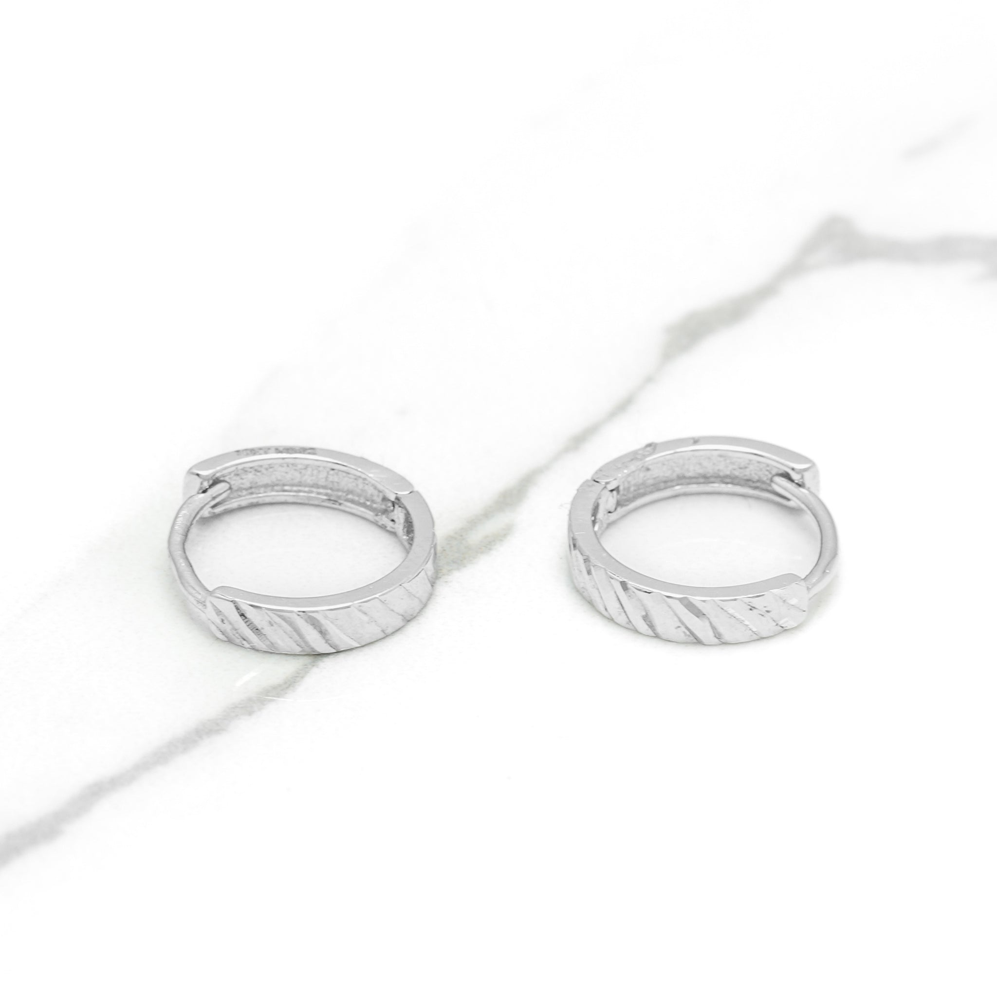 These white 10K gold huggies, adorned with a diamond cut, are perfect for those seeking subtle yet radiant elegance. Ideal for everyday wear or special occasions.