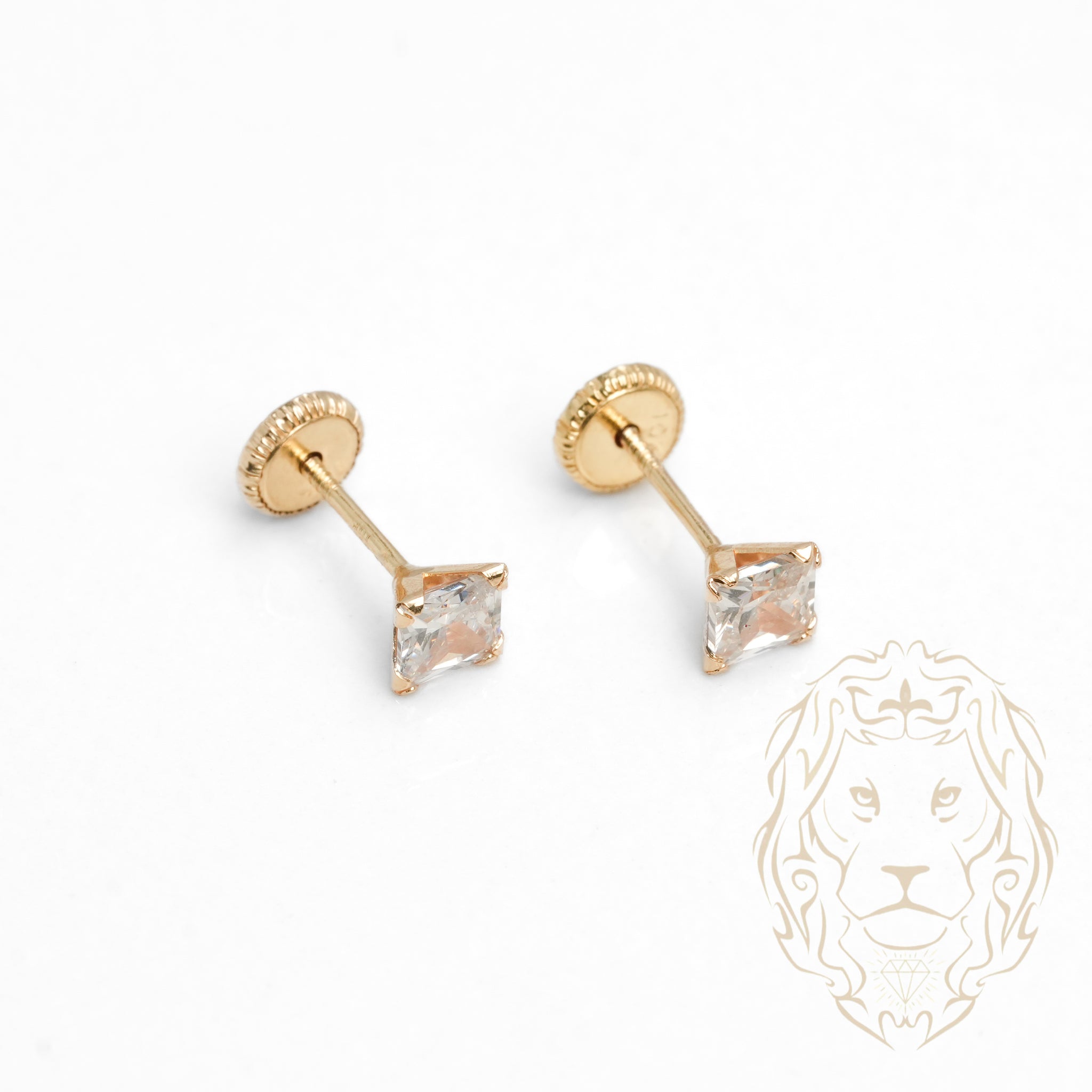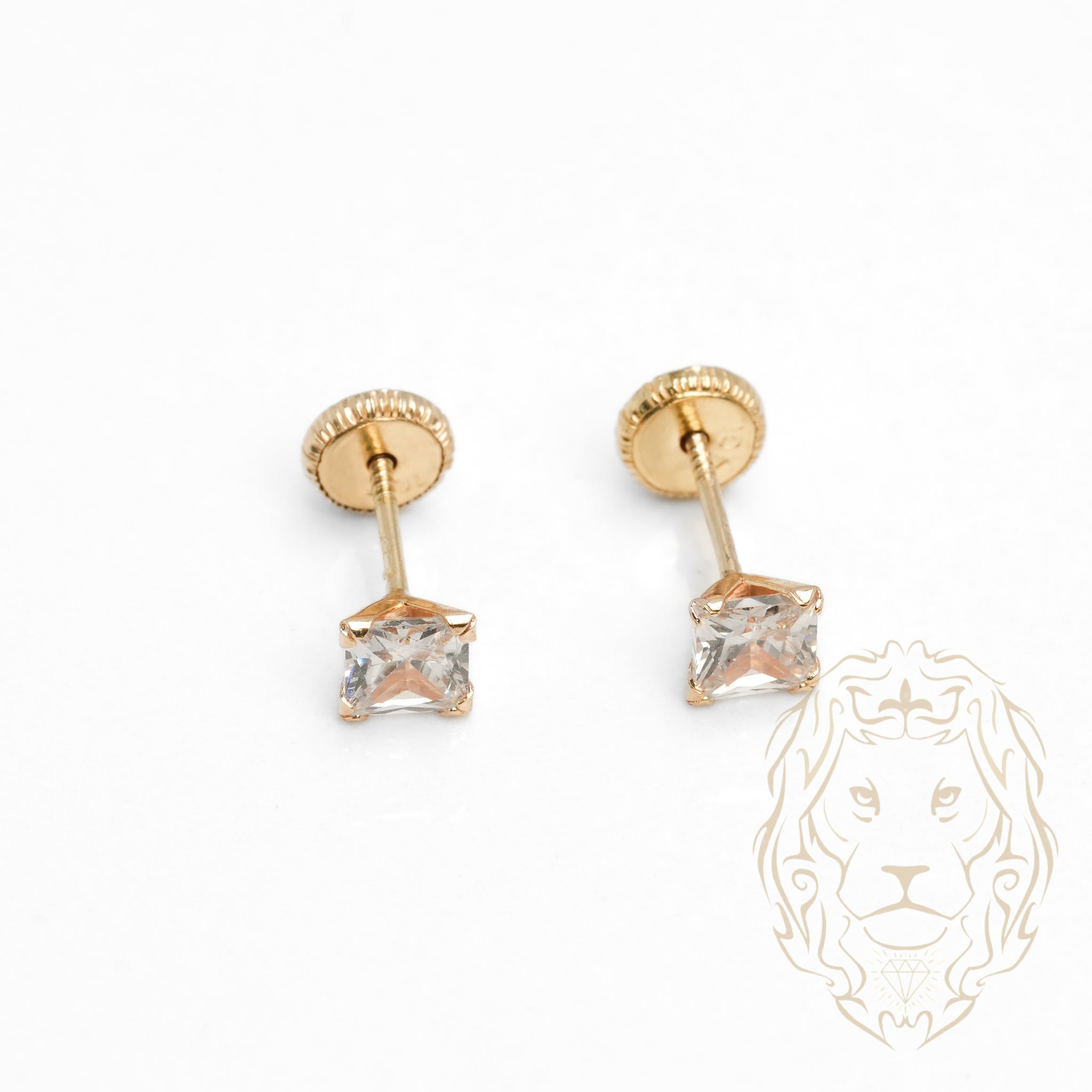 Studs à visser - Or 10K jaune pierre cz coupe princesse 4mm - BOG889