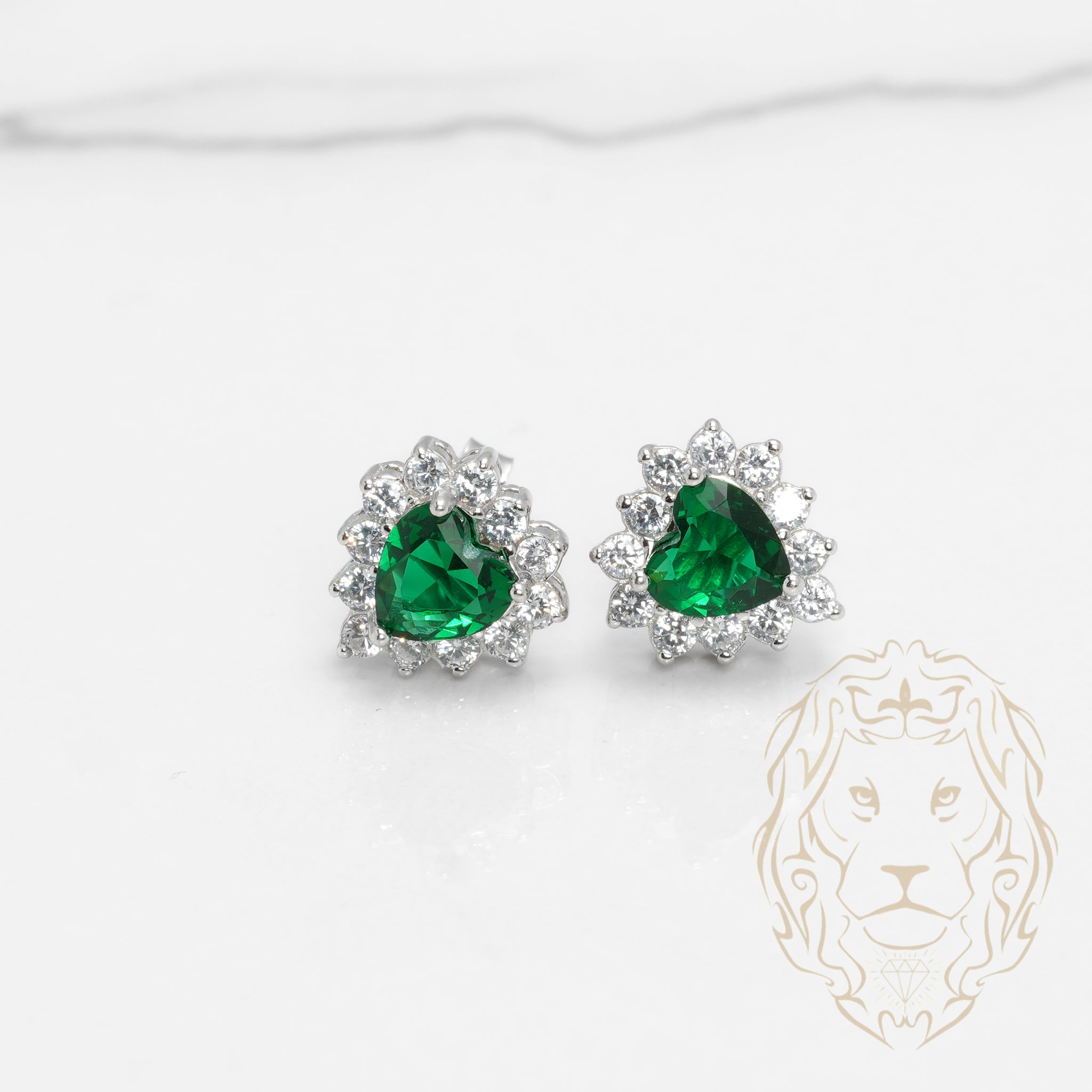 Ces clous en forme de cœur vert avec halo de cz ajoutent une note de fantaisie élégante.