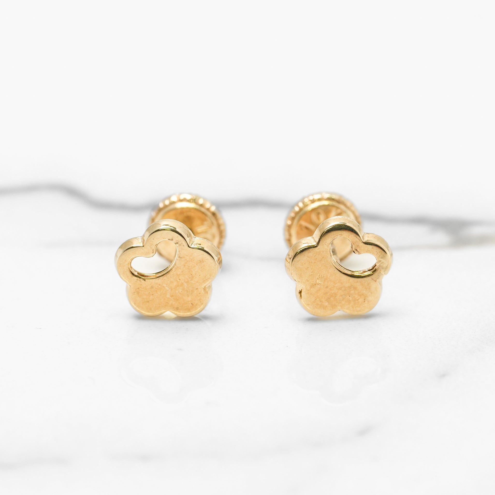 These polished flower-shaped studs in 10K yellow gold feature a screw closure for added security. They combine beauty and functionality, perfect for an elegant, feminine touch that stays put all day long.