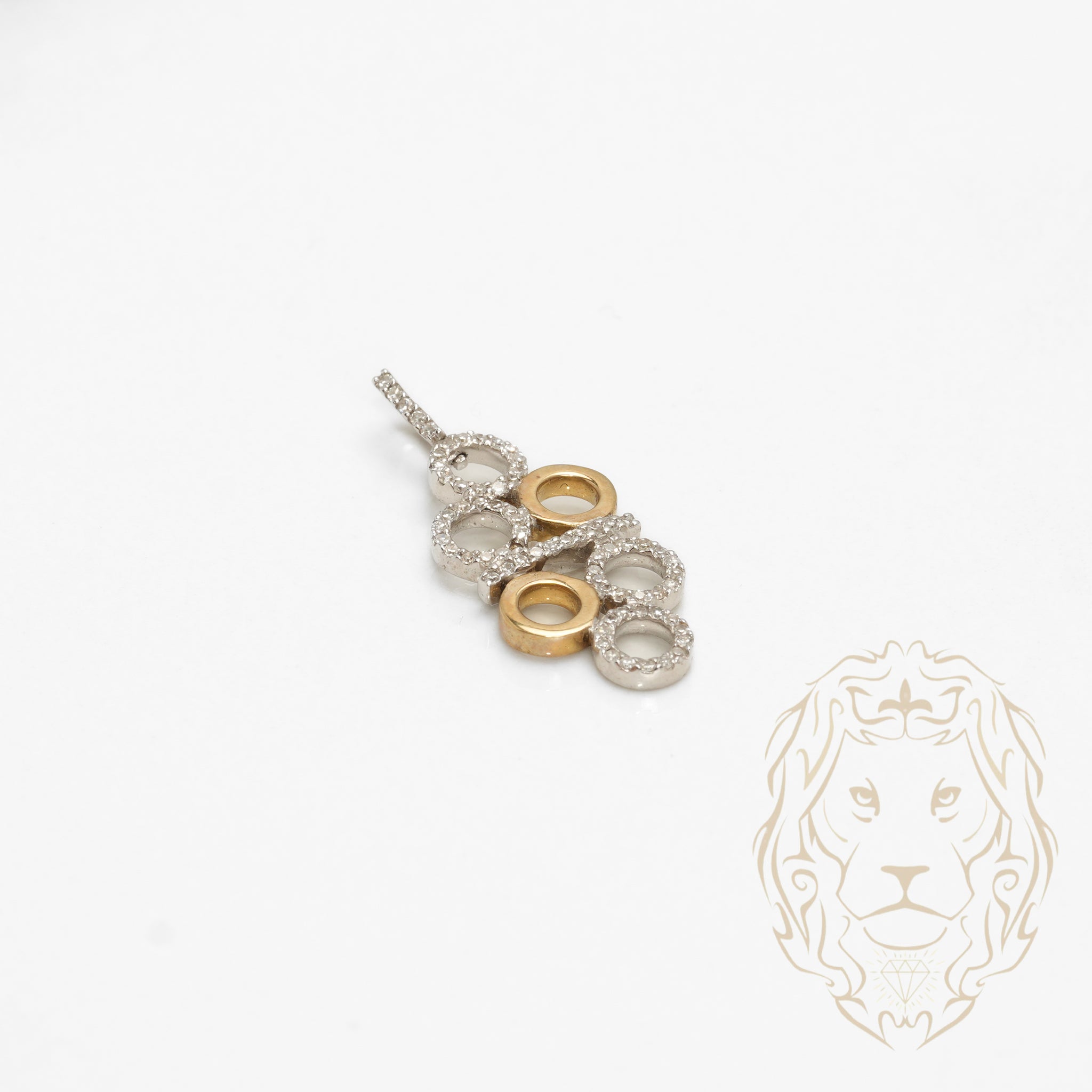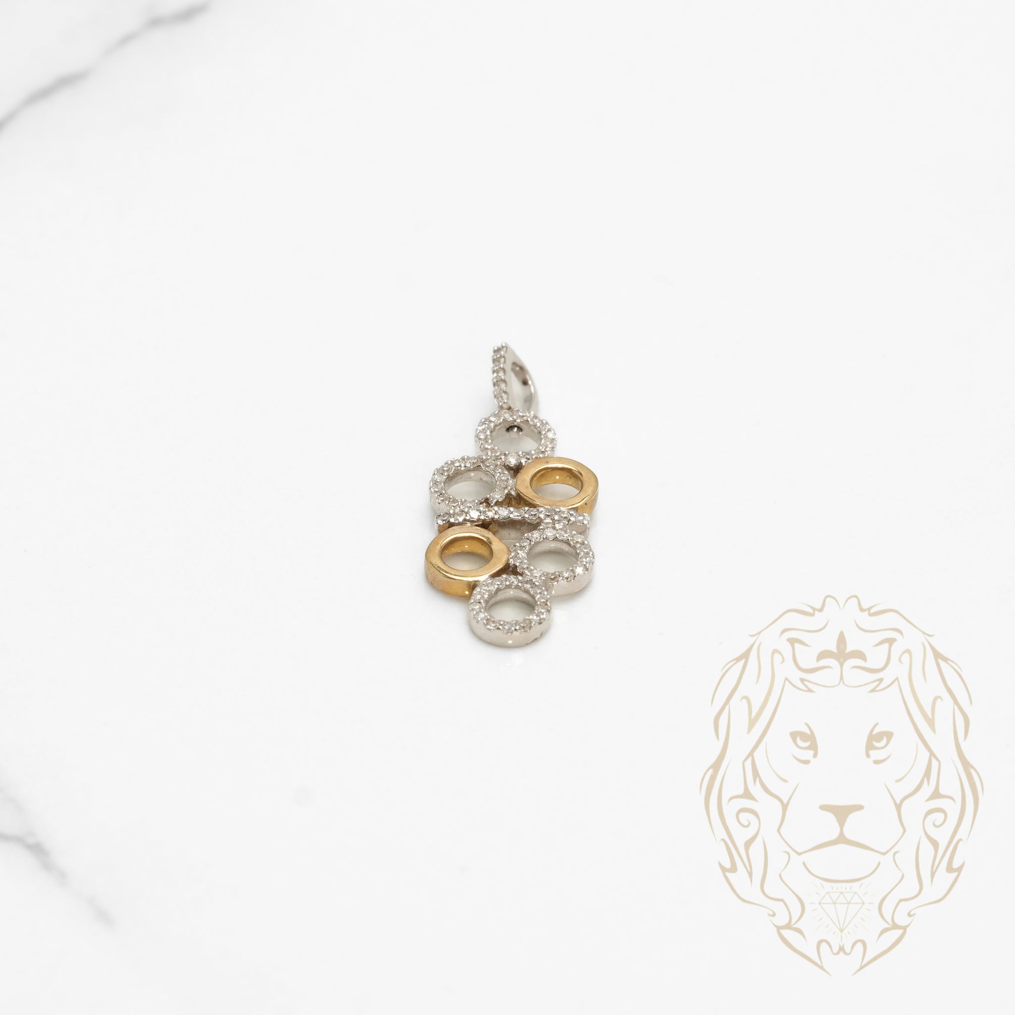 Ce pendentif en or 10K deux tons représente des cercles enlacés pavés de diamants naturels (0.15CT), pour une touche symbolique de raffinement.