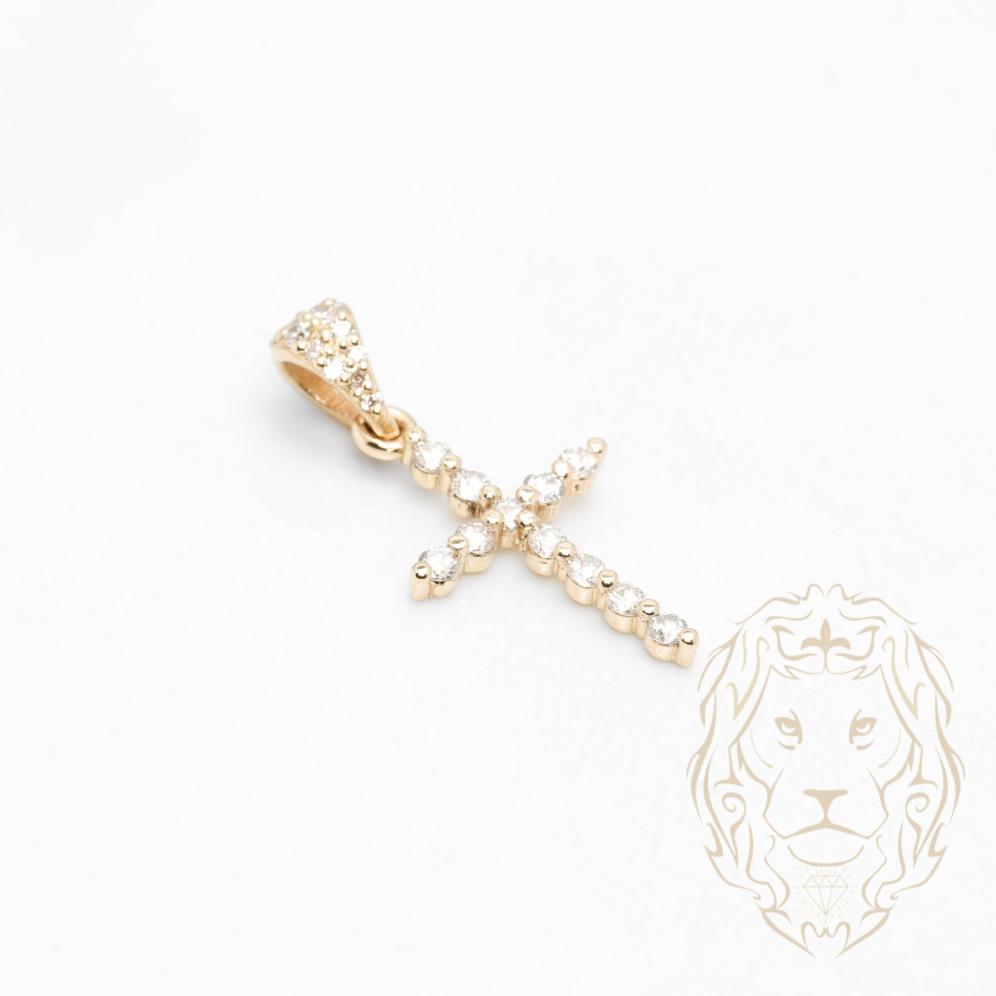 Pendentif - Or 10K jaune croix en diamants lab 0.15CT & bail pavé 0.10CT - PEGL044