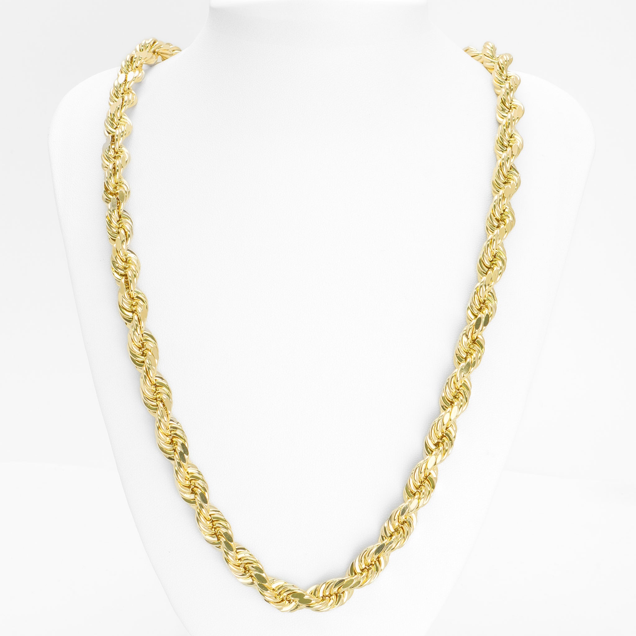 This 10K yellow gold chain, with a 9mm twist, is perfect for those who love imposing jewelry. Its twisted design and golden sparkle make it a must-have choice for an assertive, sophisticated look.