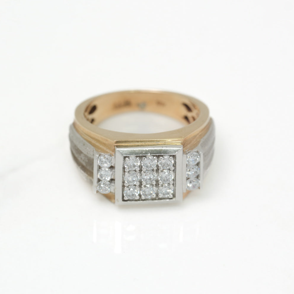 Men's ring - 10K two-tone yellow & white gold with square cz pavé - RIG239
