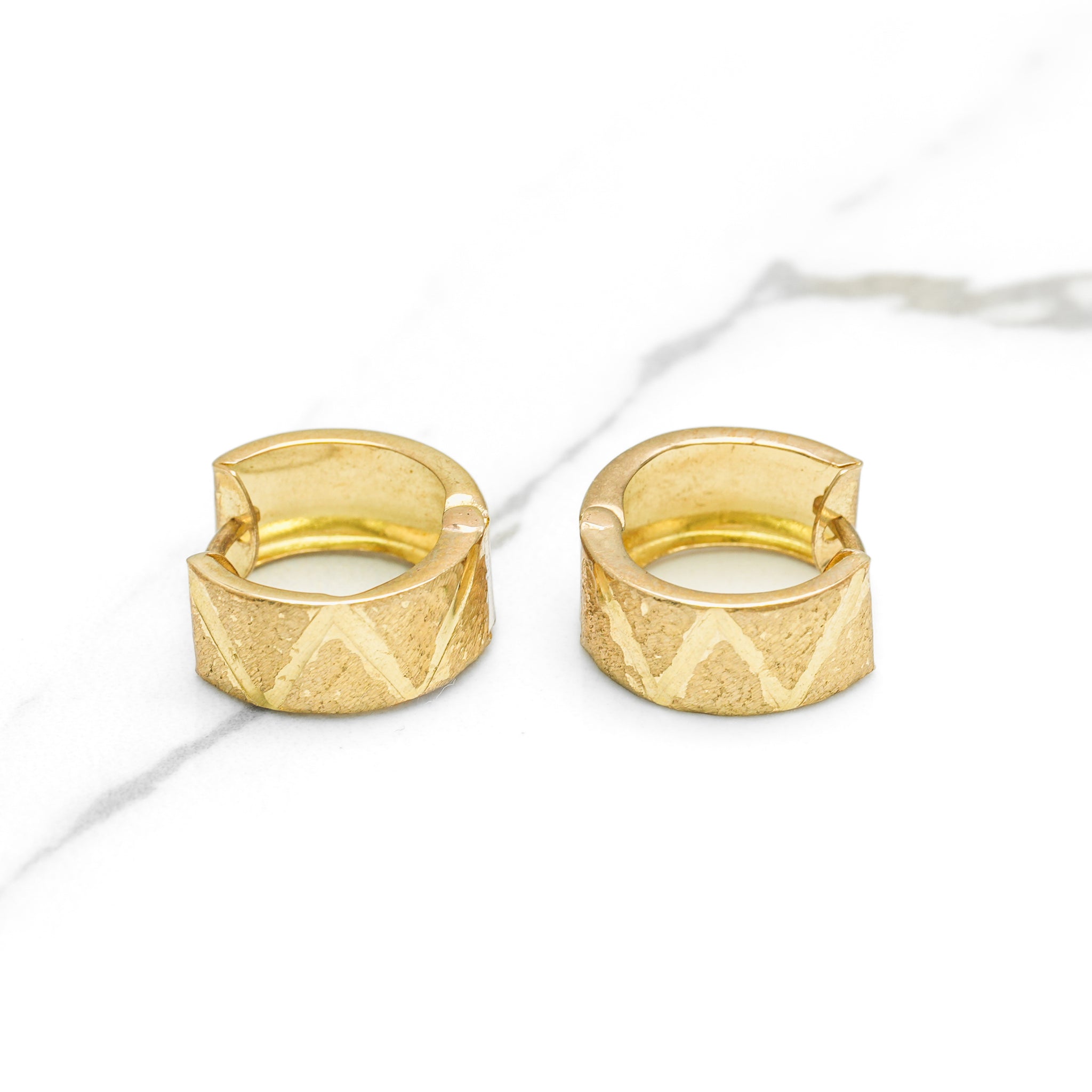 These 10K yellow gold huggies, with a zigzag pattern, add a dynamic touch to your look. Perfect for those who like to stand out with a distinctive piece of jewelry.