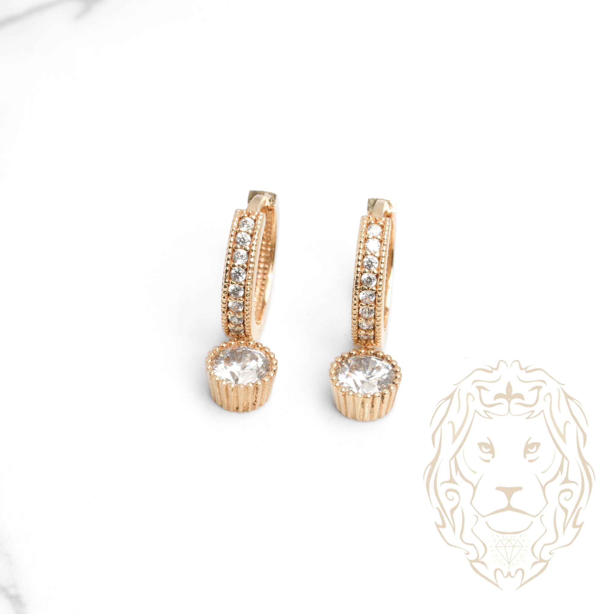 Huggies - Or 10K jaune pavé & microbillé avec pierre cz pendante - BOG892