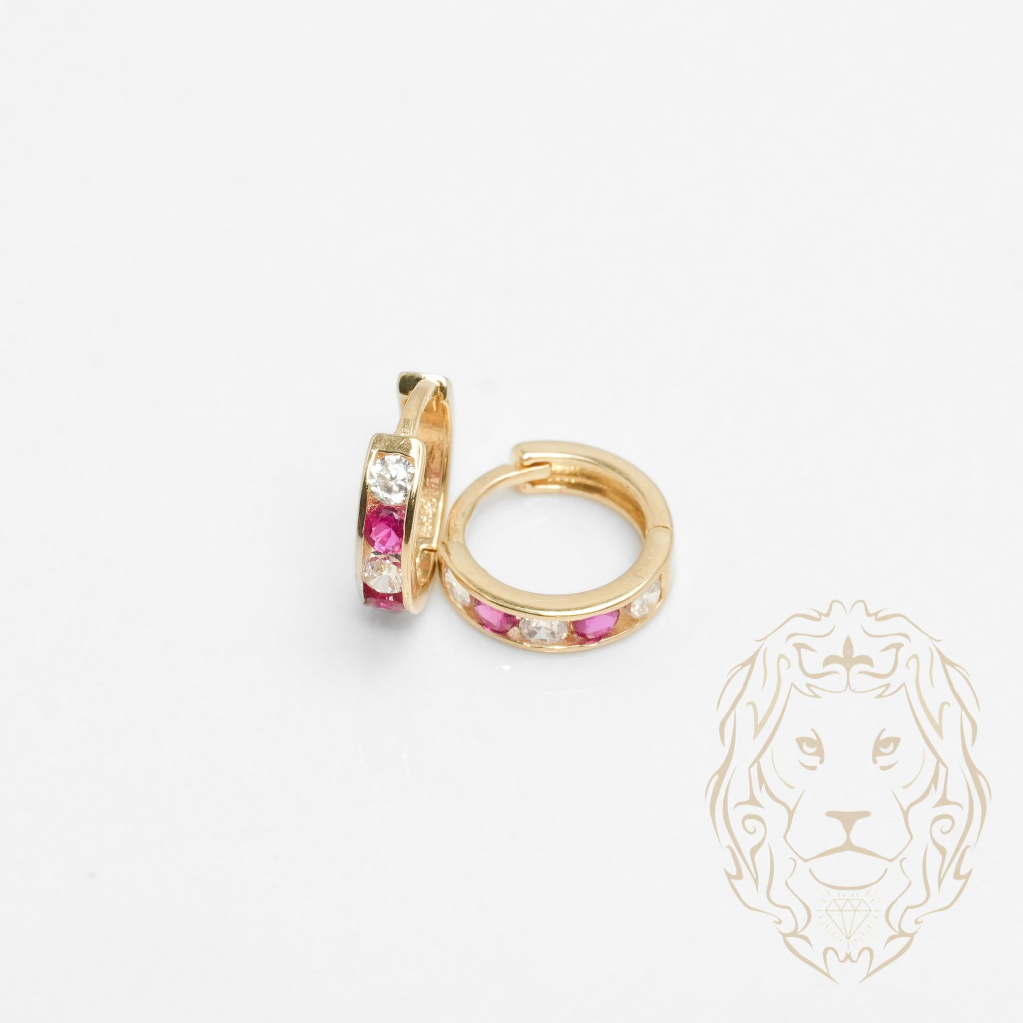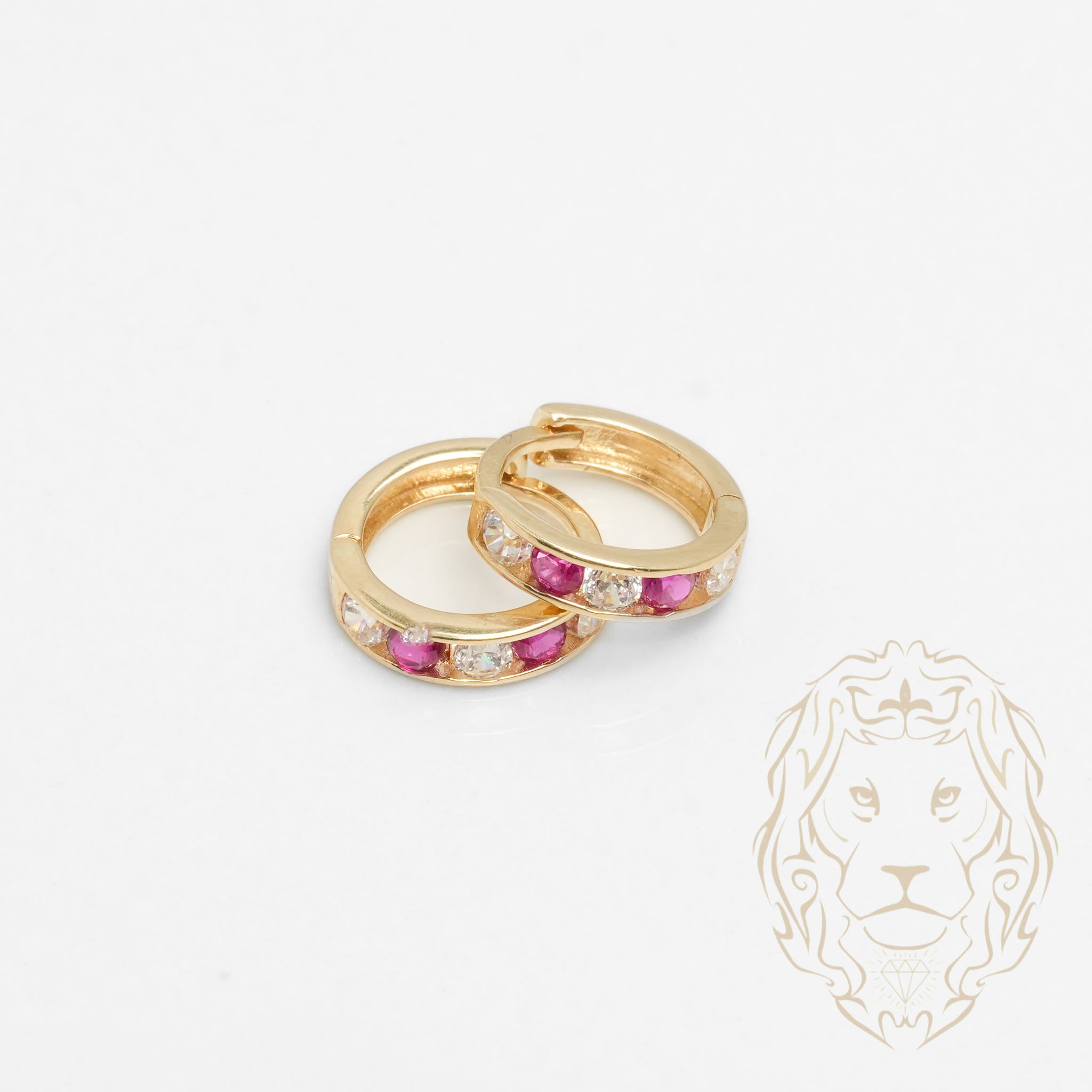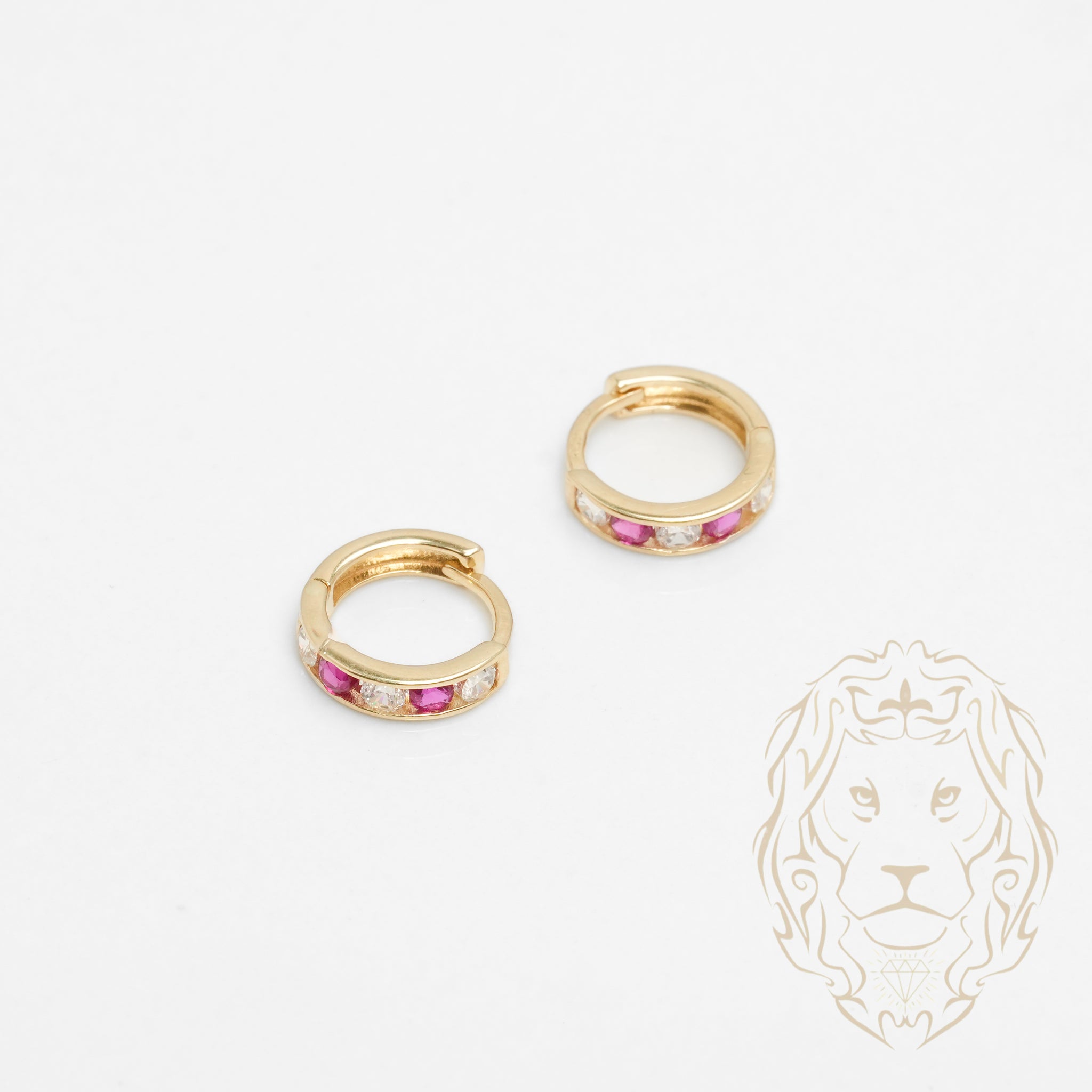 Créoles en or jaune 10K avec cz roses de 3mm, serties en canal pour un style doux et raffiné.