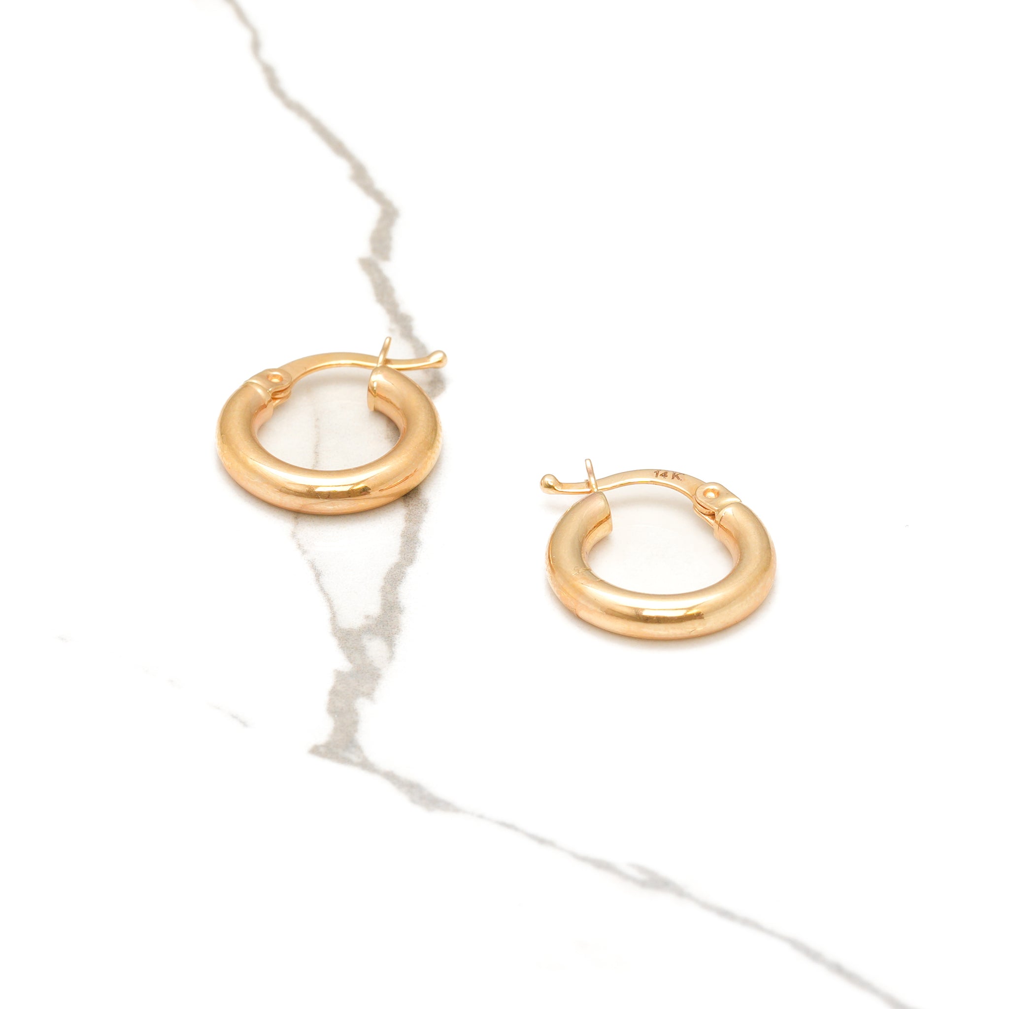 These elegant, compact 3mm huggies in 14K yellow gold.