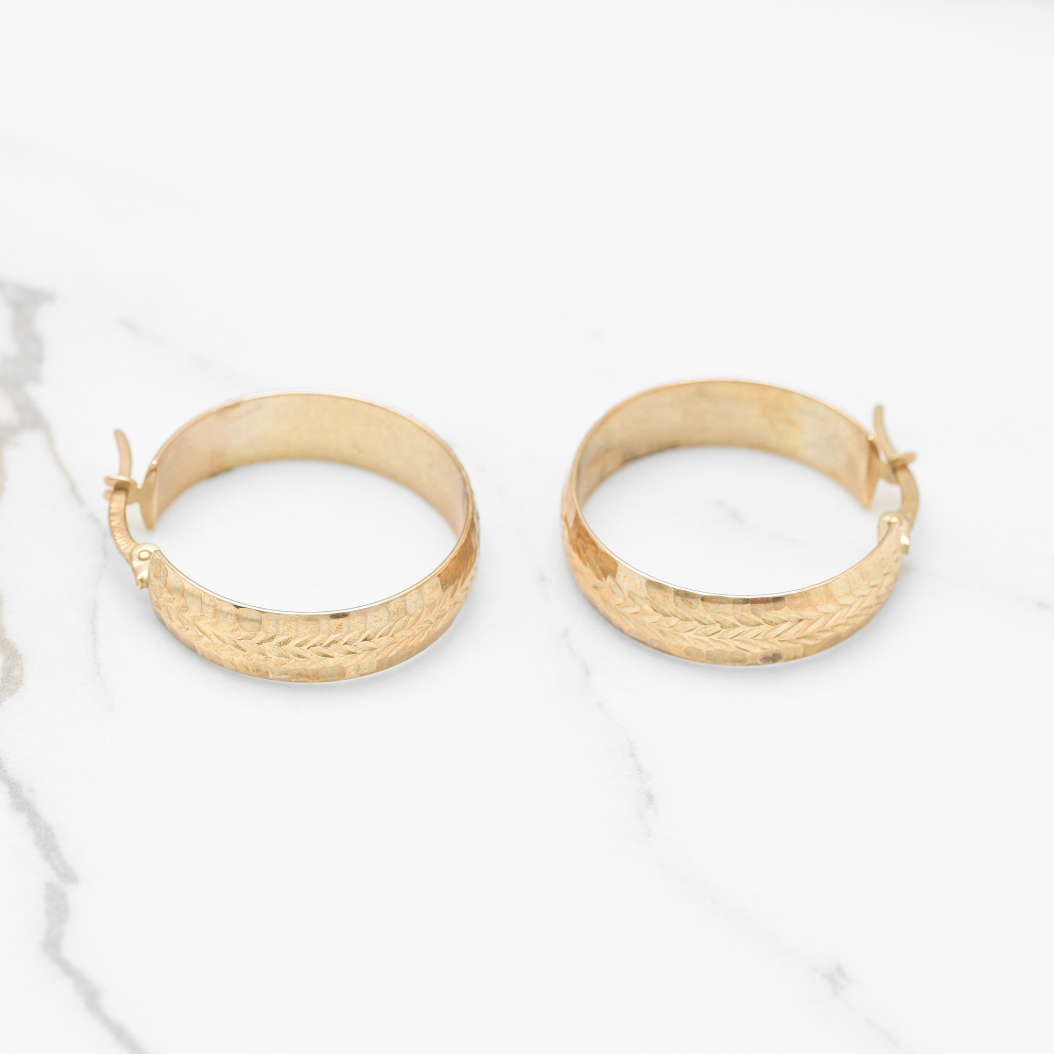 Hoops - 10K Yellow Gold diamond cut chevron pattern - BOG182
