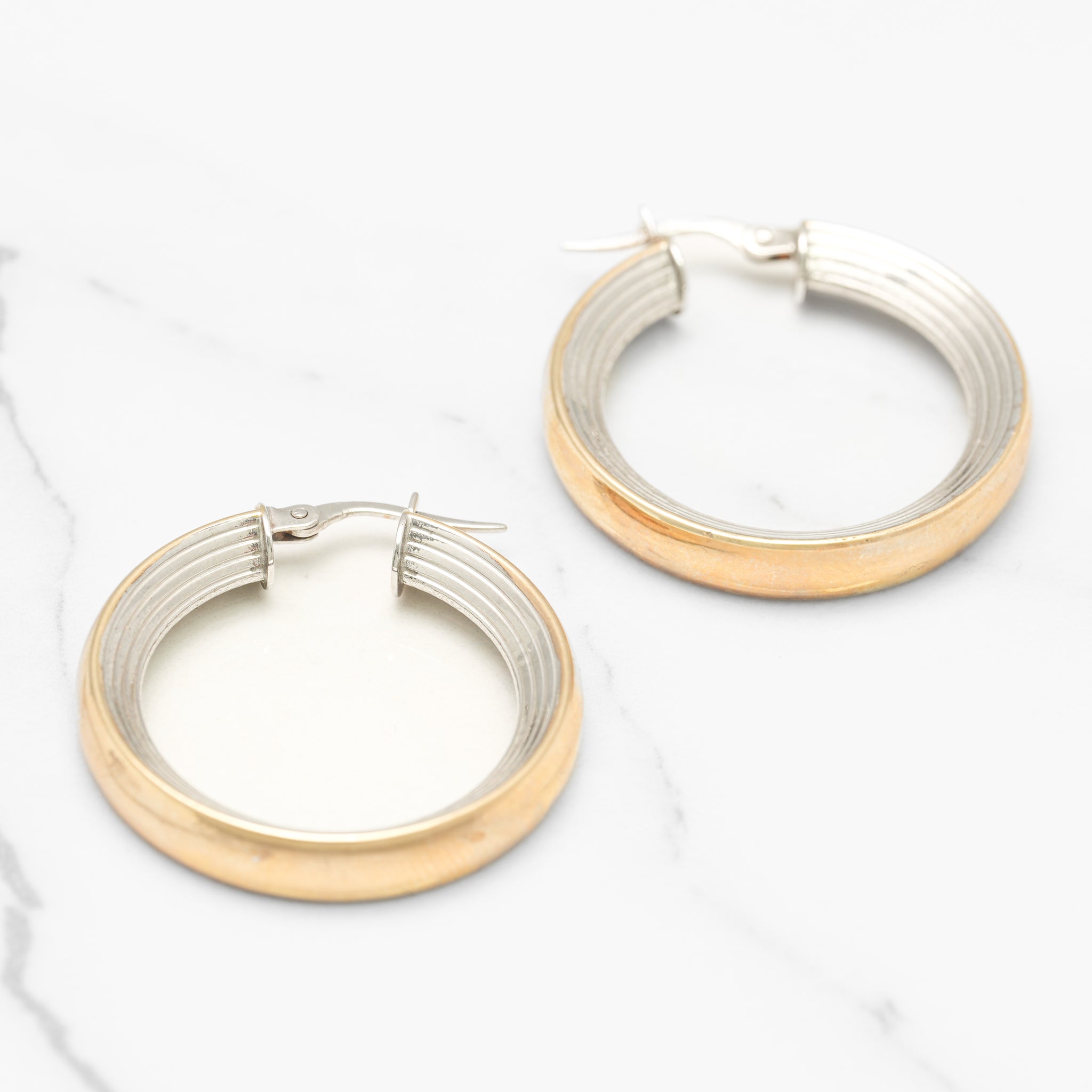 Hoops - Polished two-tone yellow & white lined 10K gold - BOG193