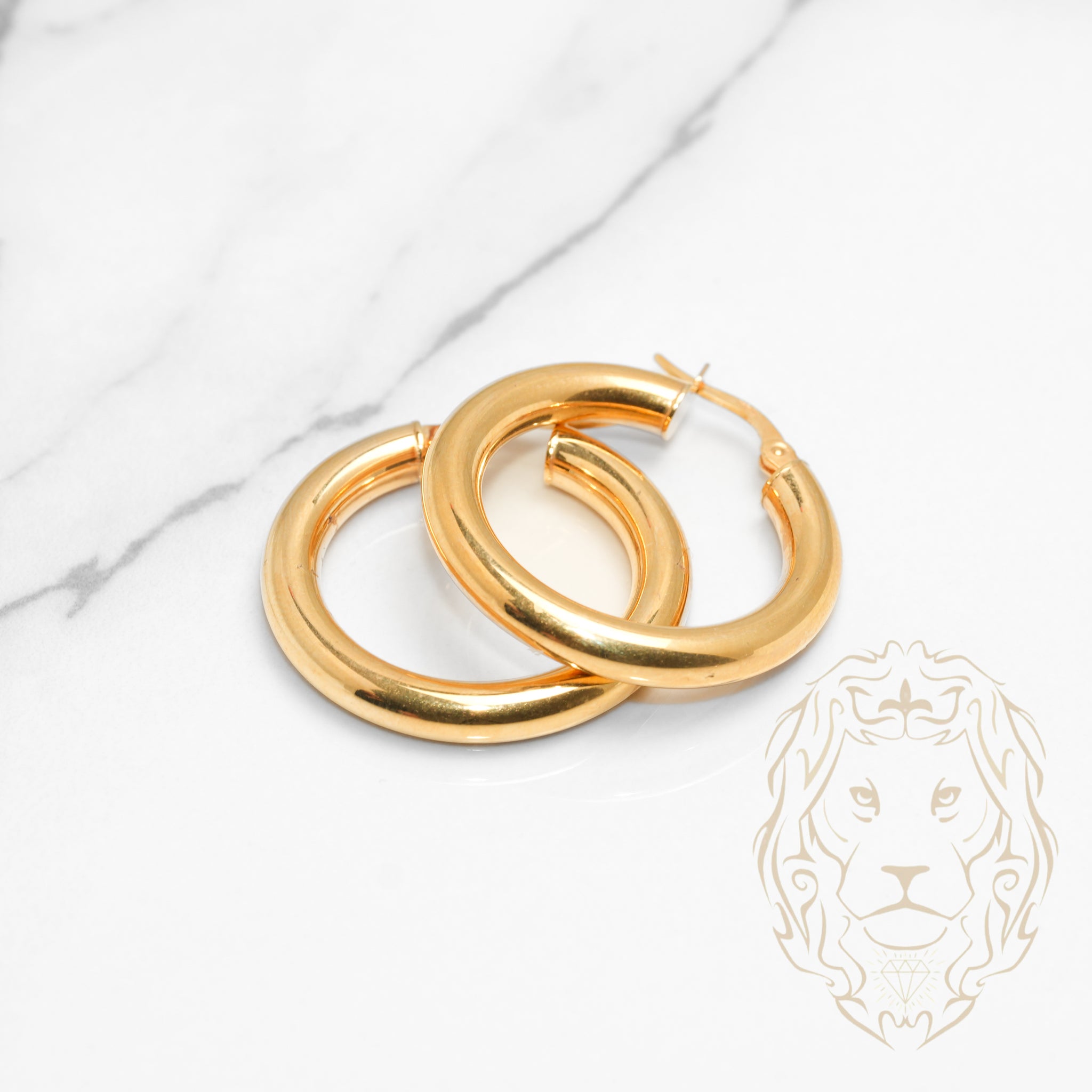 Hoops earrings in 10K yellow gold (4mm X 20mm) with mirror polish, essential in any collection.