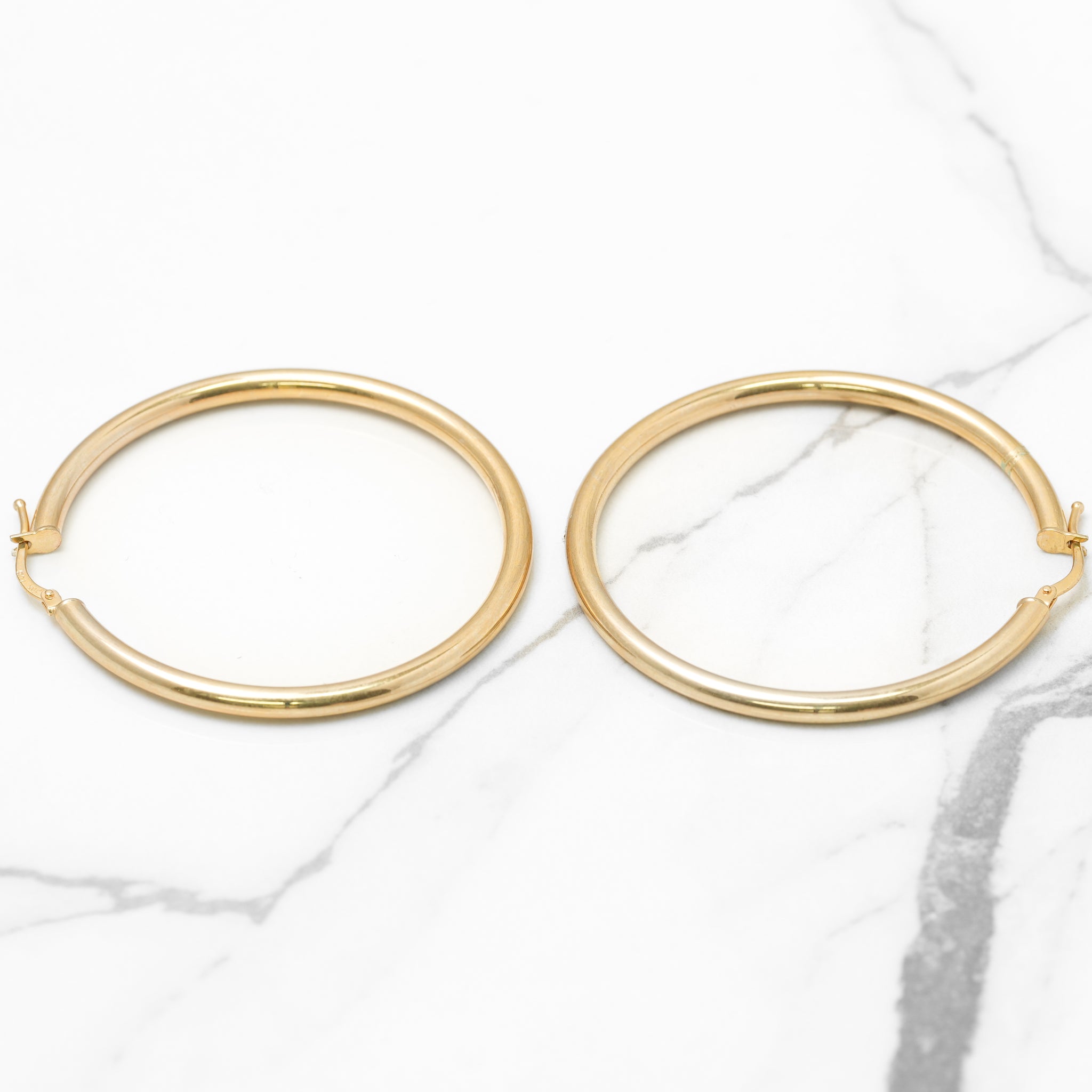 These polished 10K yellow gold hoops are ideal for a minimalist yet elegant look. Their classic design and subtle shine make them a perfect choice for everyday wear.