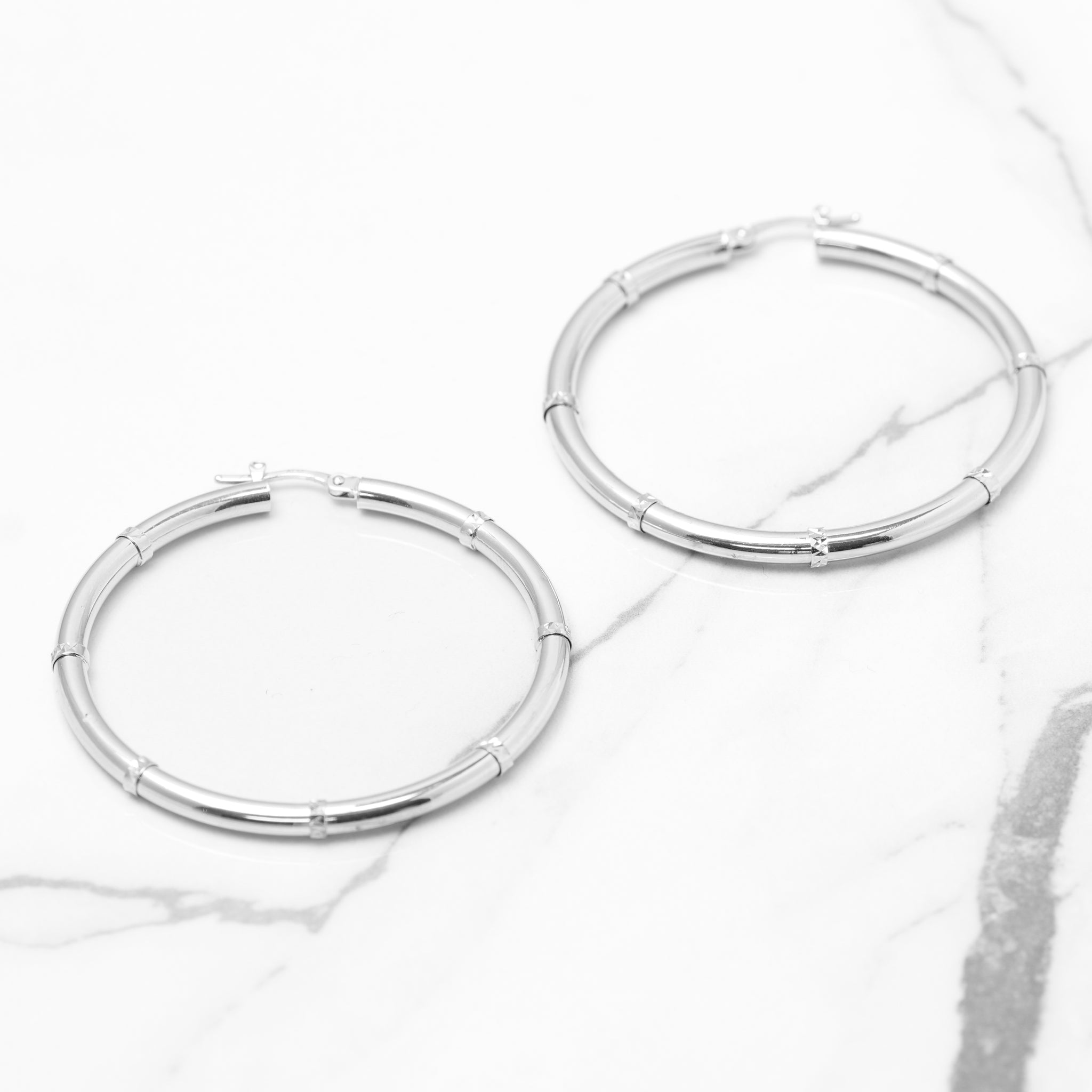 Hoops - Polished white 10K gold with diamond-cut bands - BOG279