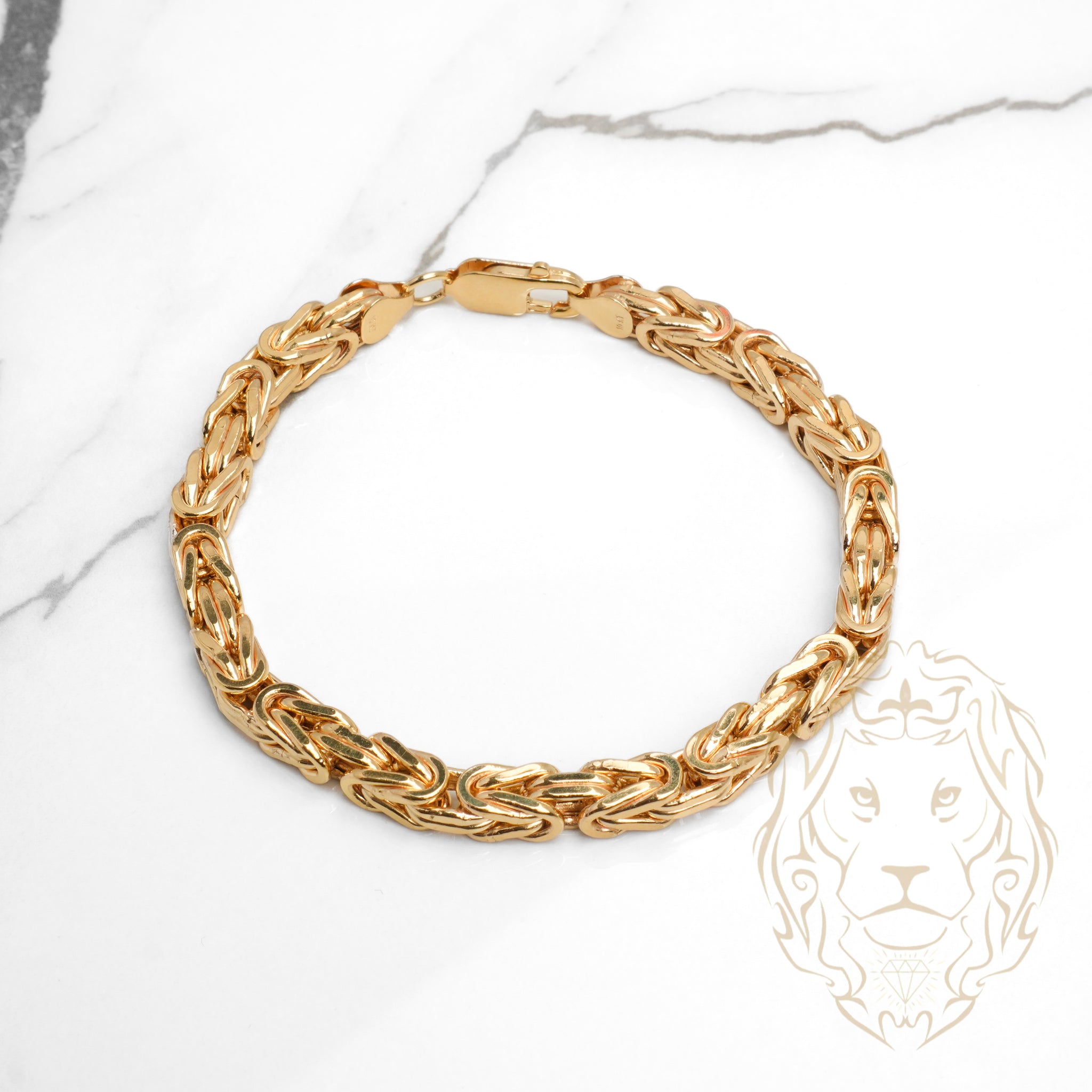 Motif byzantin de 5.6mm en or jaune 10K, un bracelet à la texture riche et élégante.