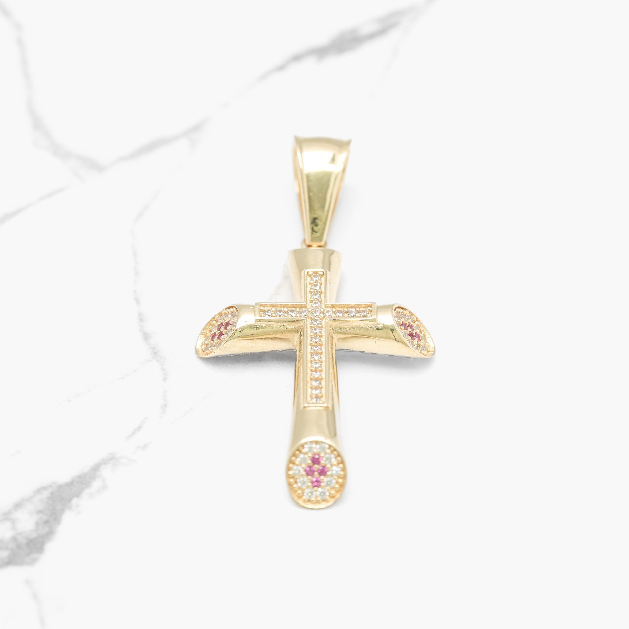 Pendant - 10K Yellow Gold Cross Pave Cz - PEG224