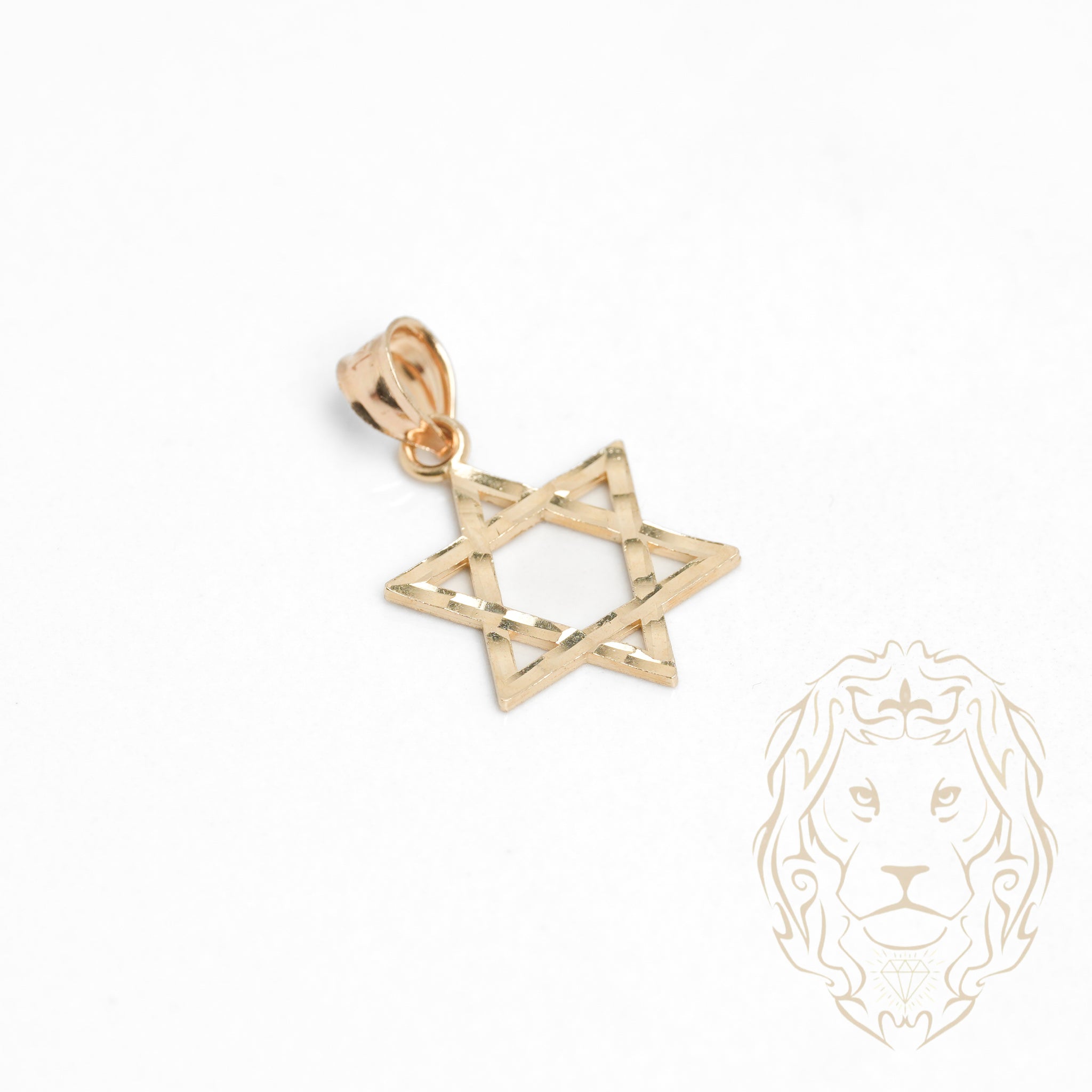 Pendentif Étoile de David en or jaune 14K avec finition coupe diamant, un bijou sacré et lumineux.