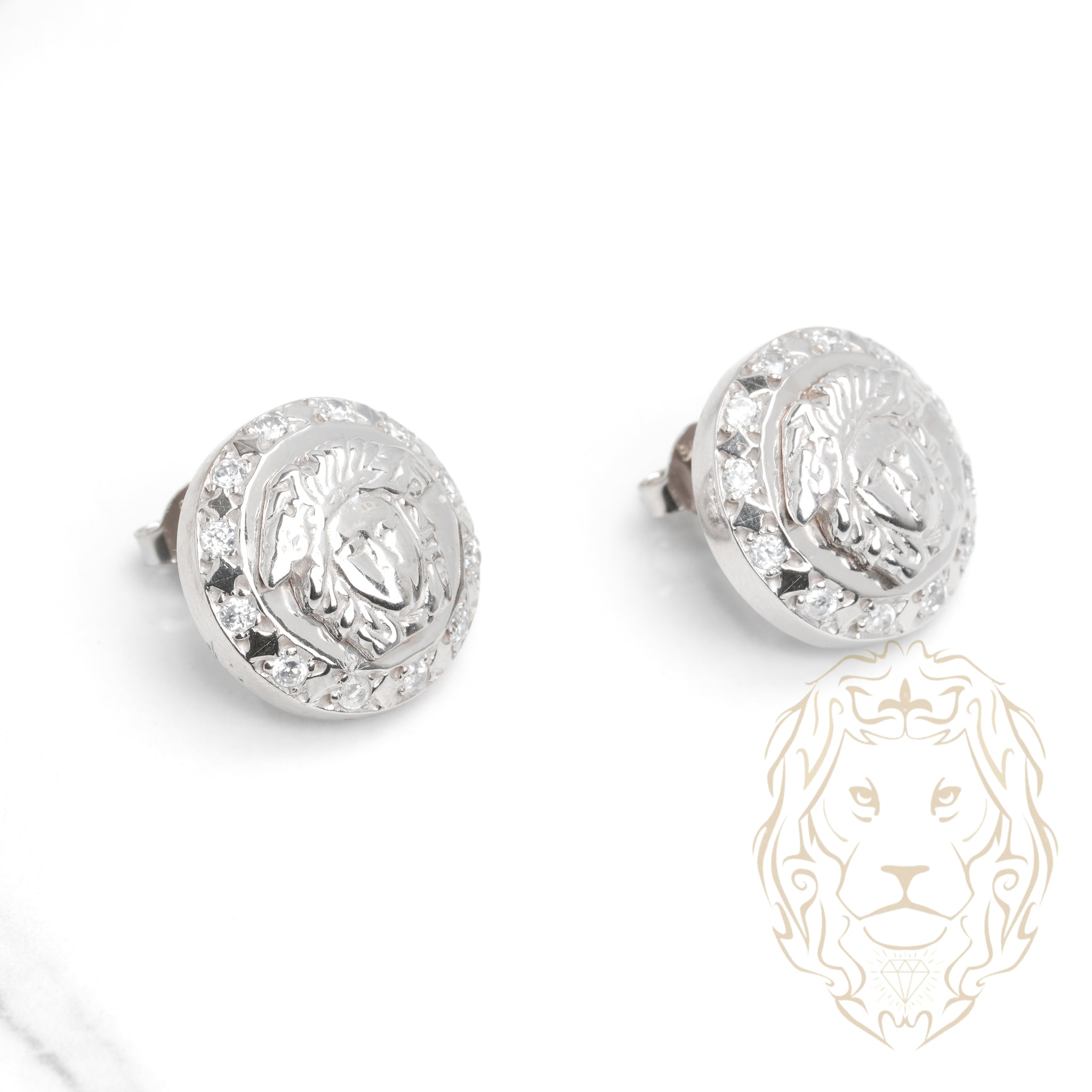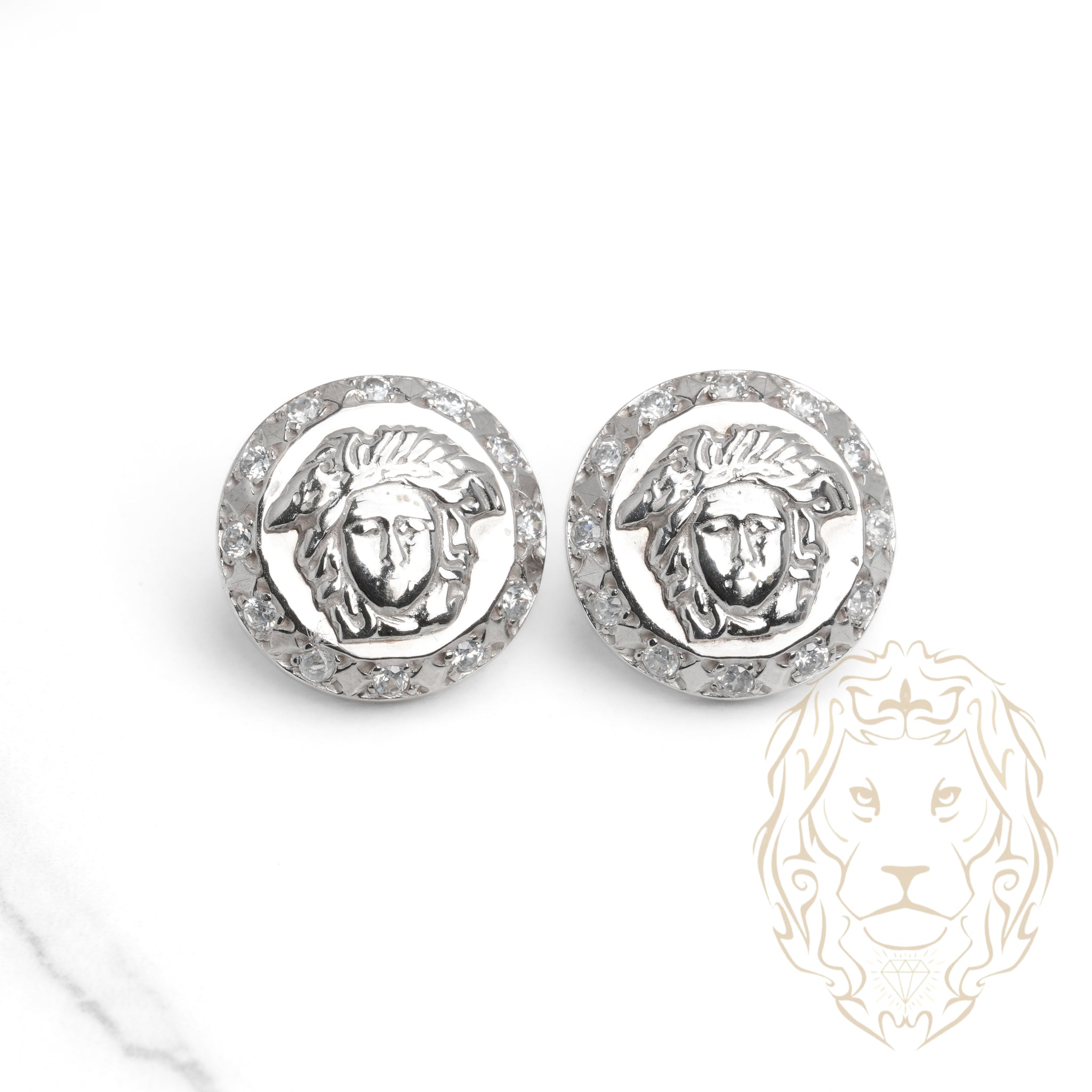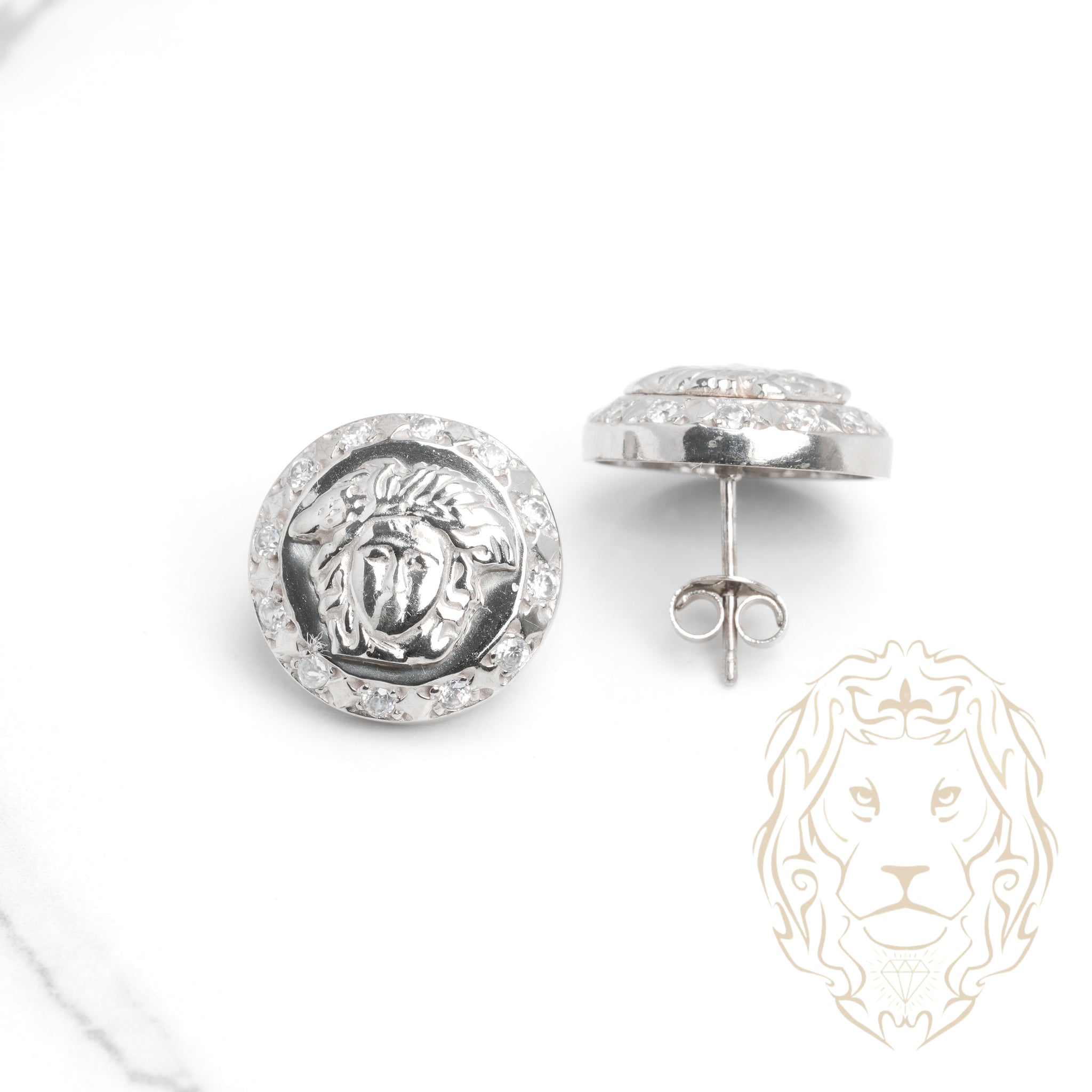 Motif méduse emblématique en or 10K blanc, rehaussé de pierres cz éclatantes.