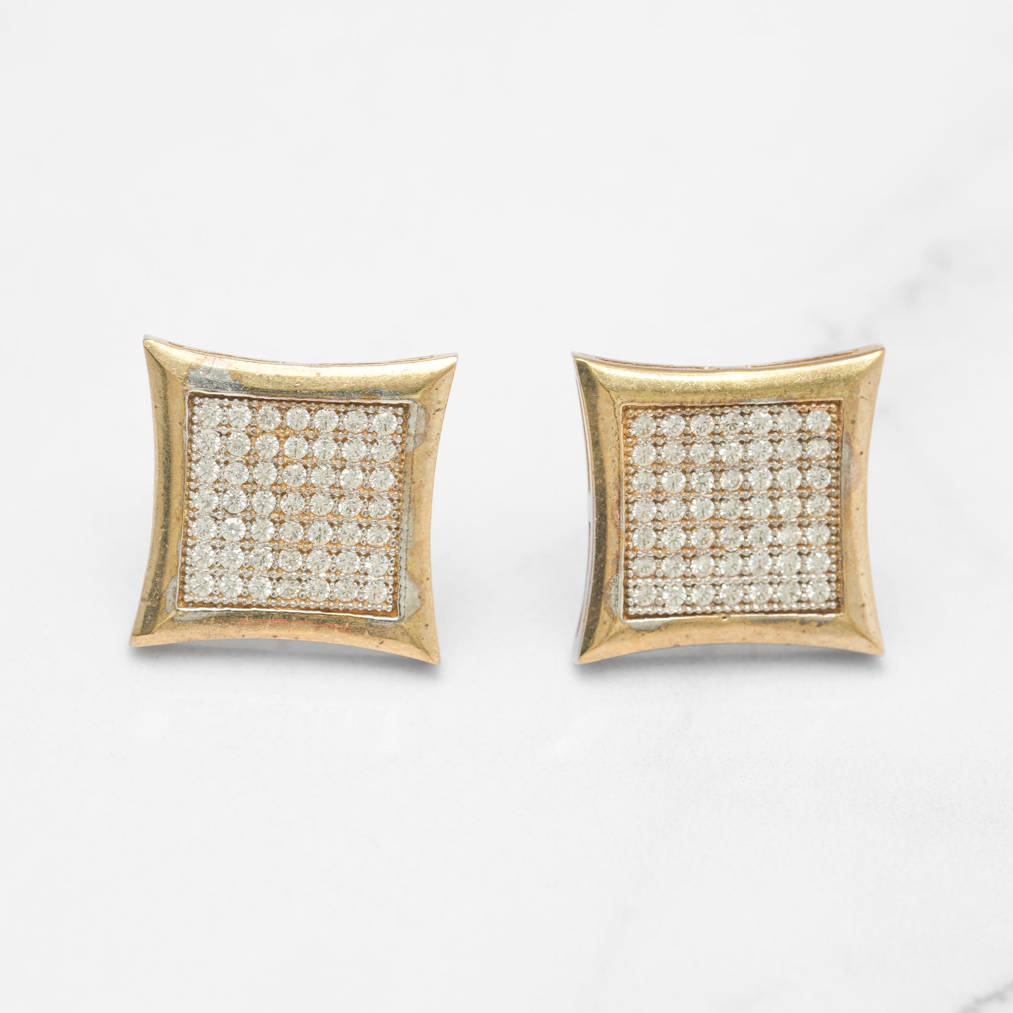 In 10K yellow gold, these diamond-shaped studs paved with cz offer geometric elegance and dazzling brilliance.