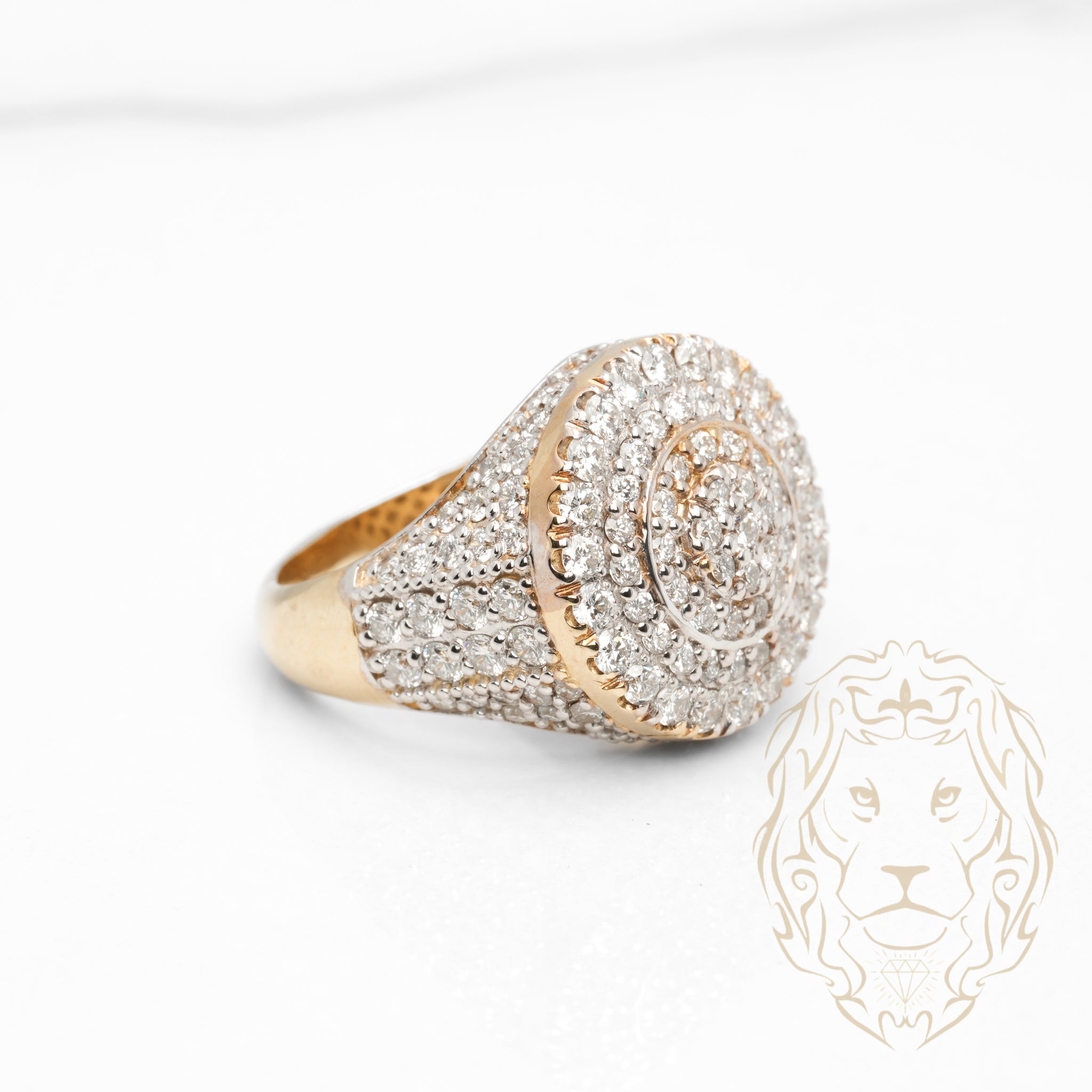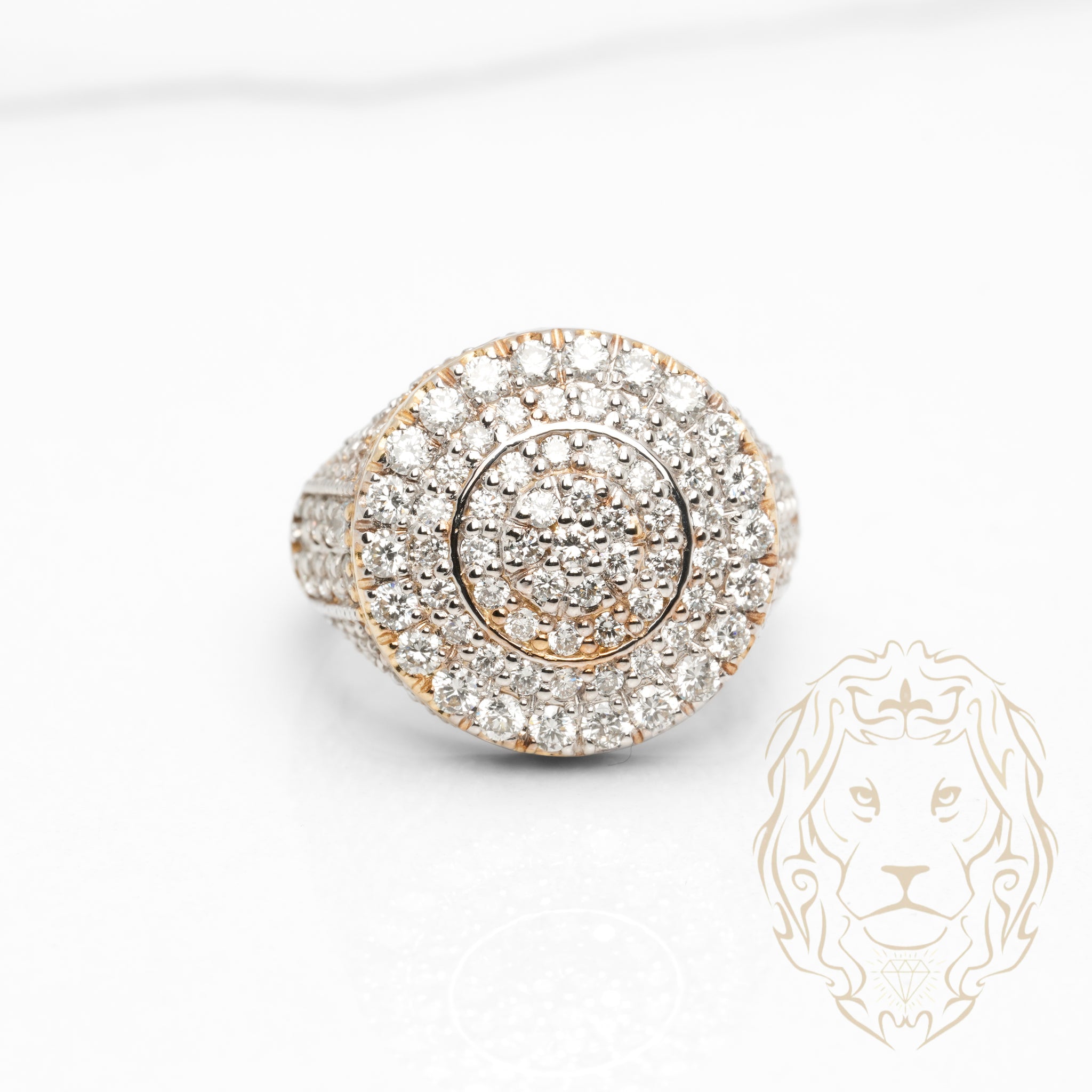 Design deux tons orné d’un cercle pavé de 1.40CT de diamants lab VS. Un look moderne et lumineux.
