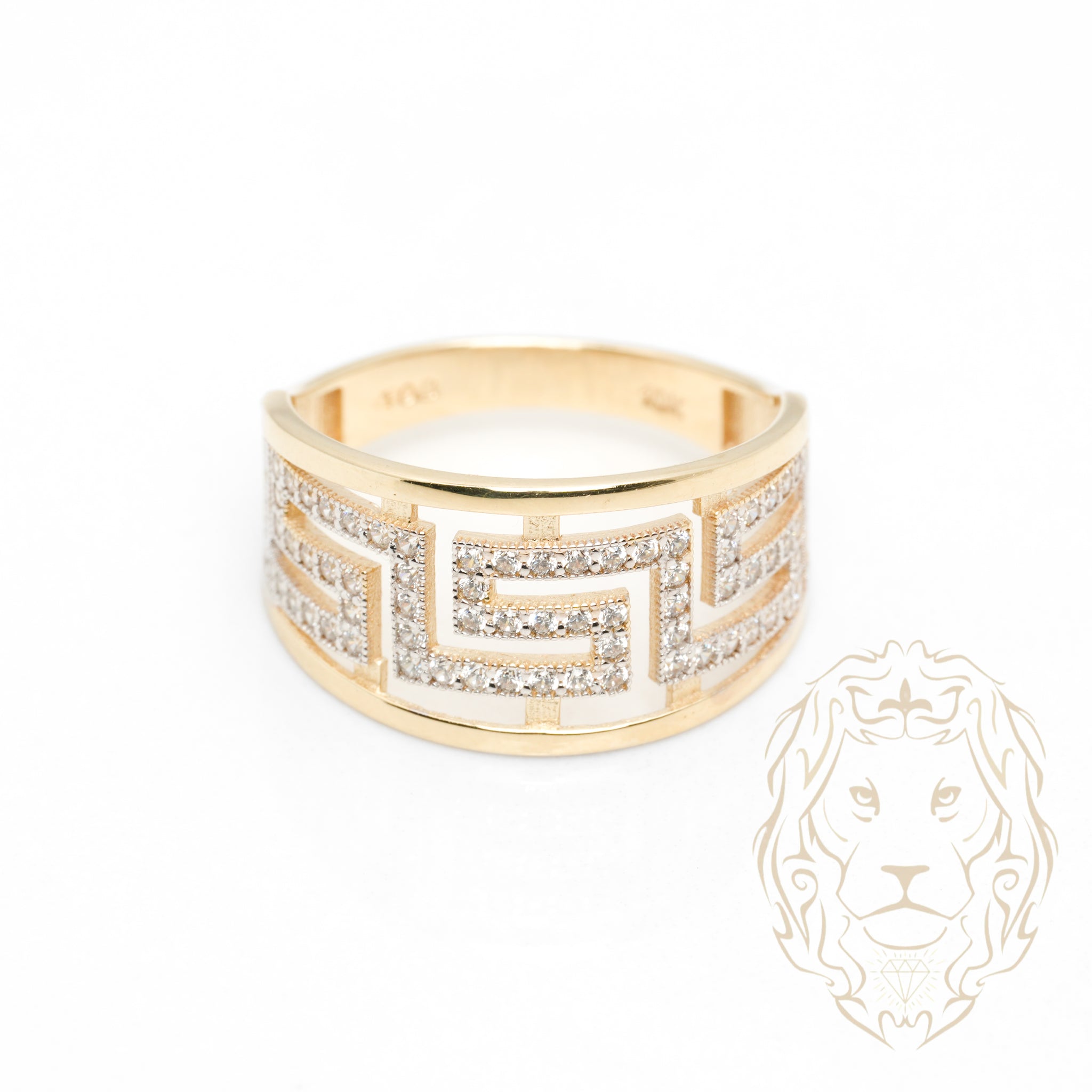 Bague - Or 10K deux tons jaune & blanc motif méduse pavé cz - RIG861