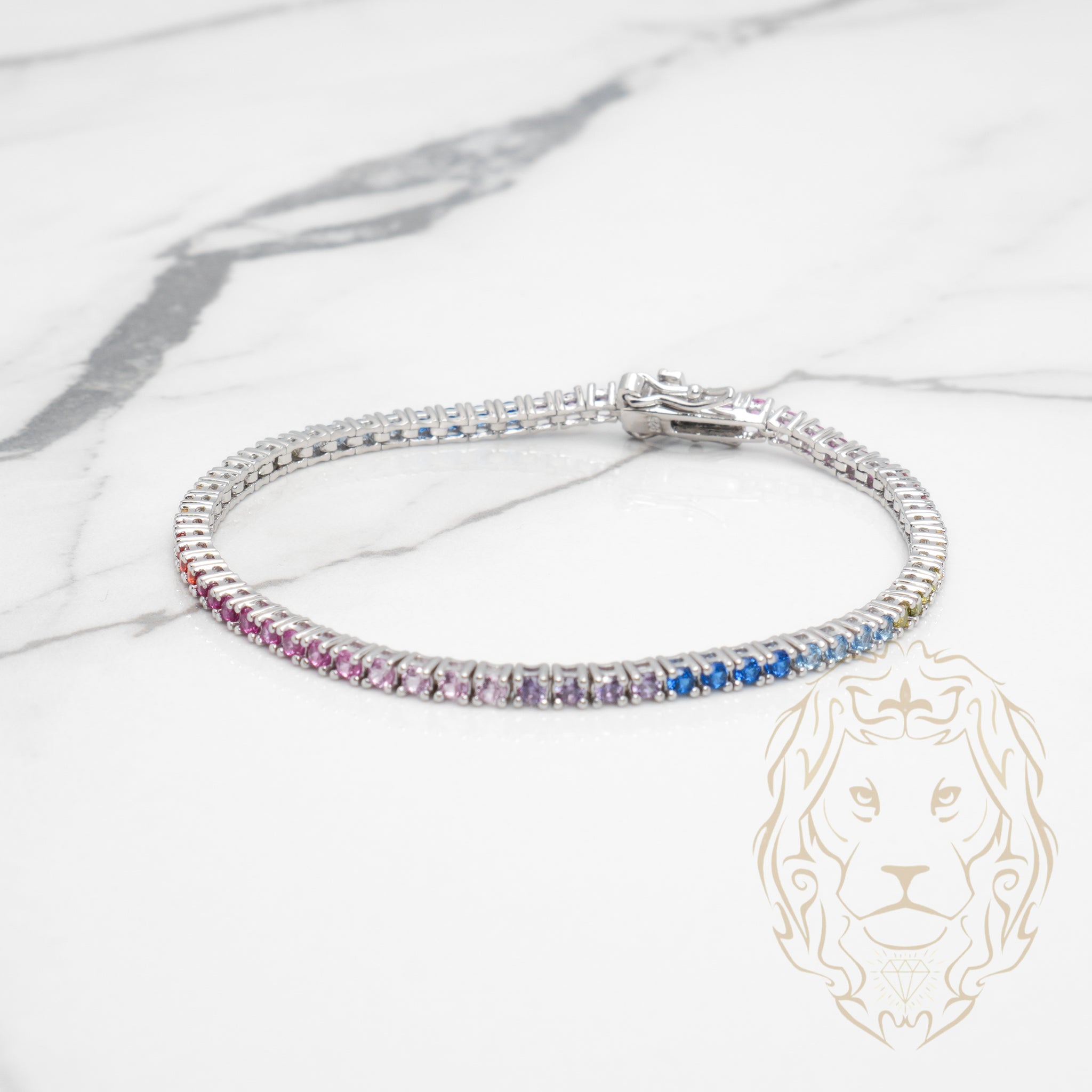 Un bracelet tennis délicat en argent avec pierres cz multicolores de 2mm. Vibrant, lumineux et ludique.