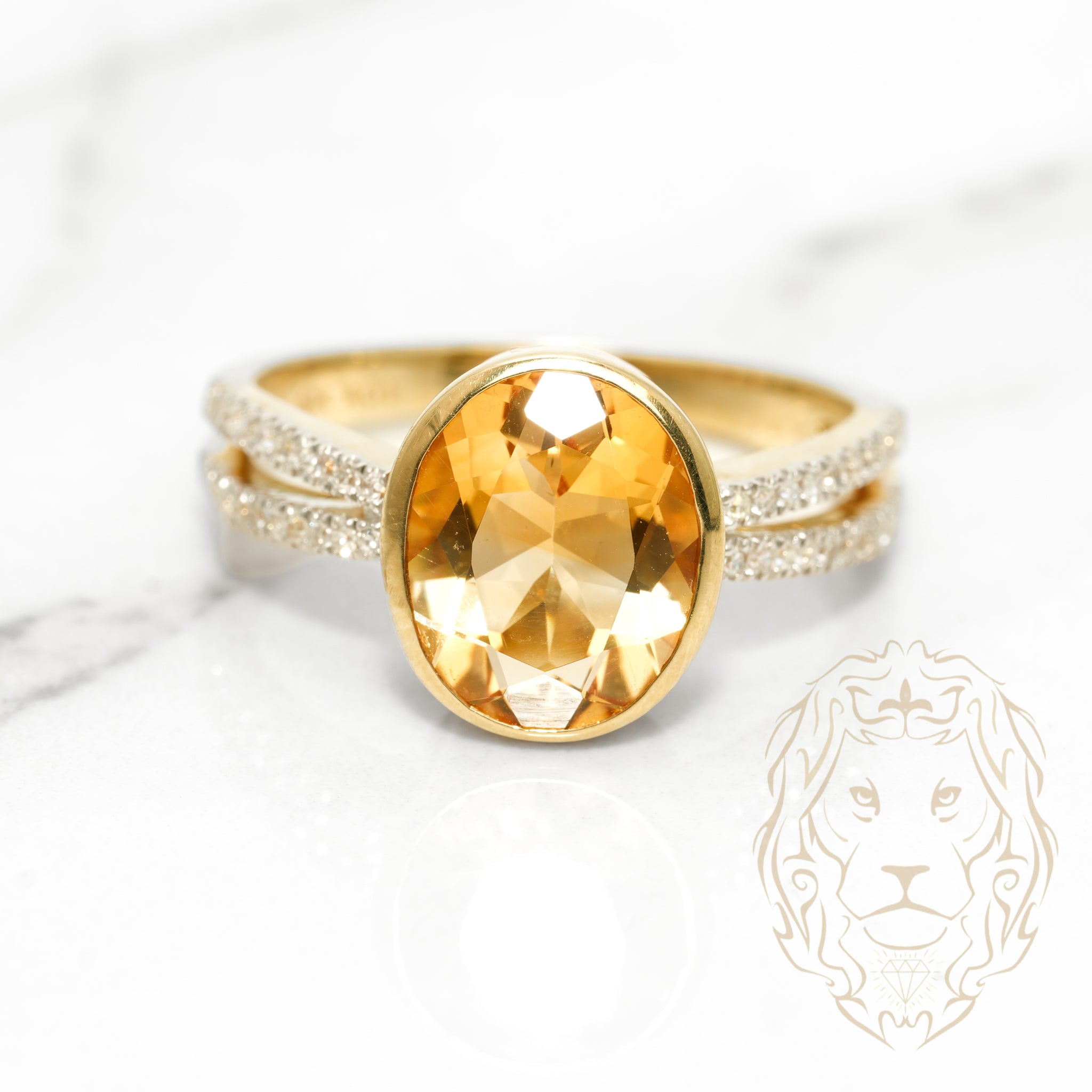This 10K yellow gold engagement ring, with a 2.00CT oval-cut citrine and 0.20CT pavé natural diamonds, is an eye-catching piece of jewelry.