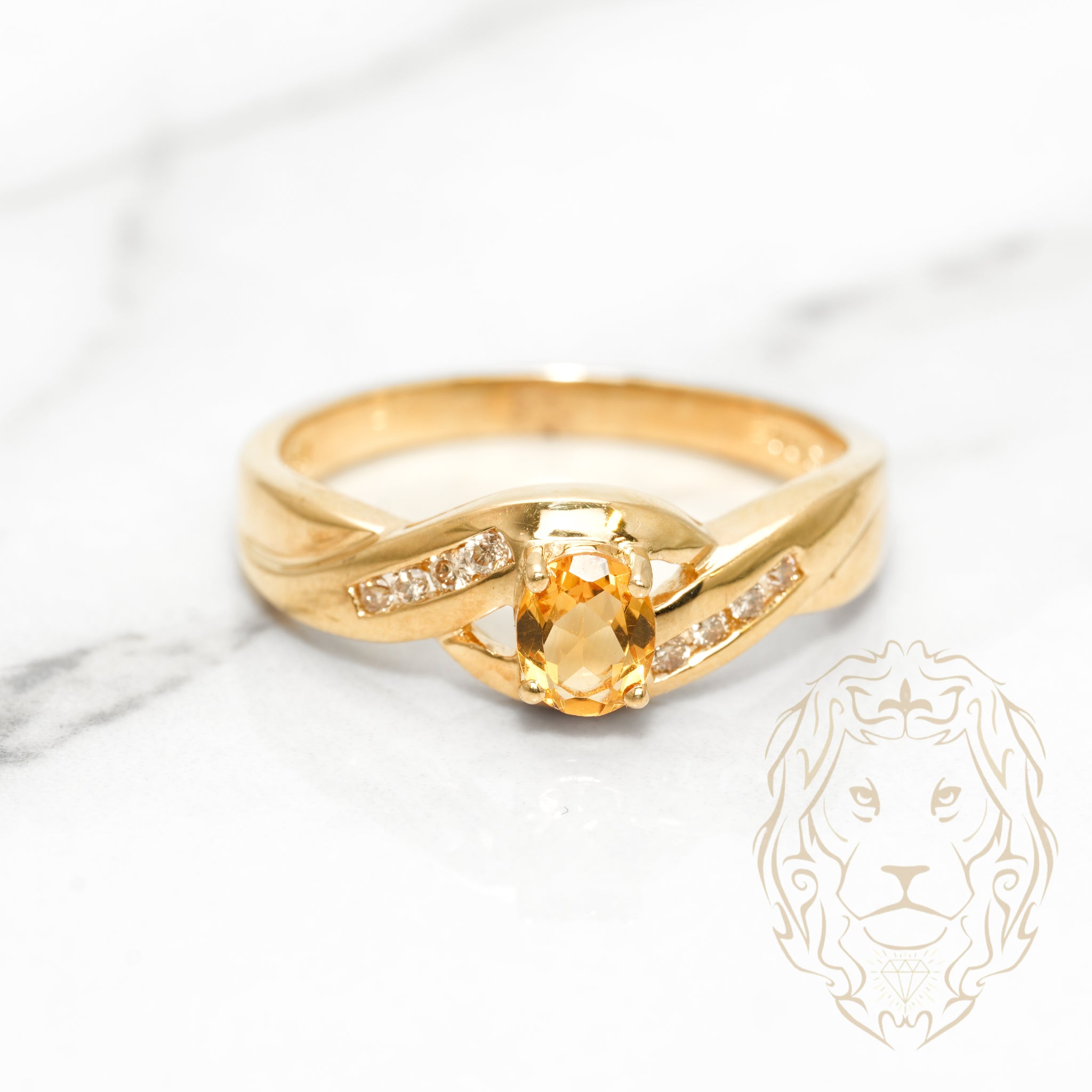Engagement ring - 10K gold oval cut citrine 0.20CT & channel set natural diamonds 0.15CT - RIGD098