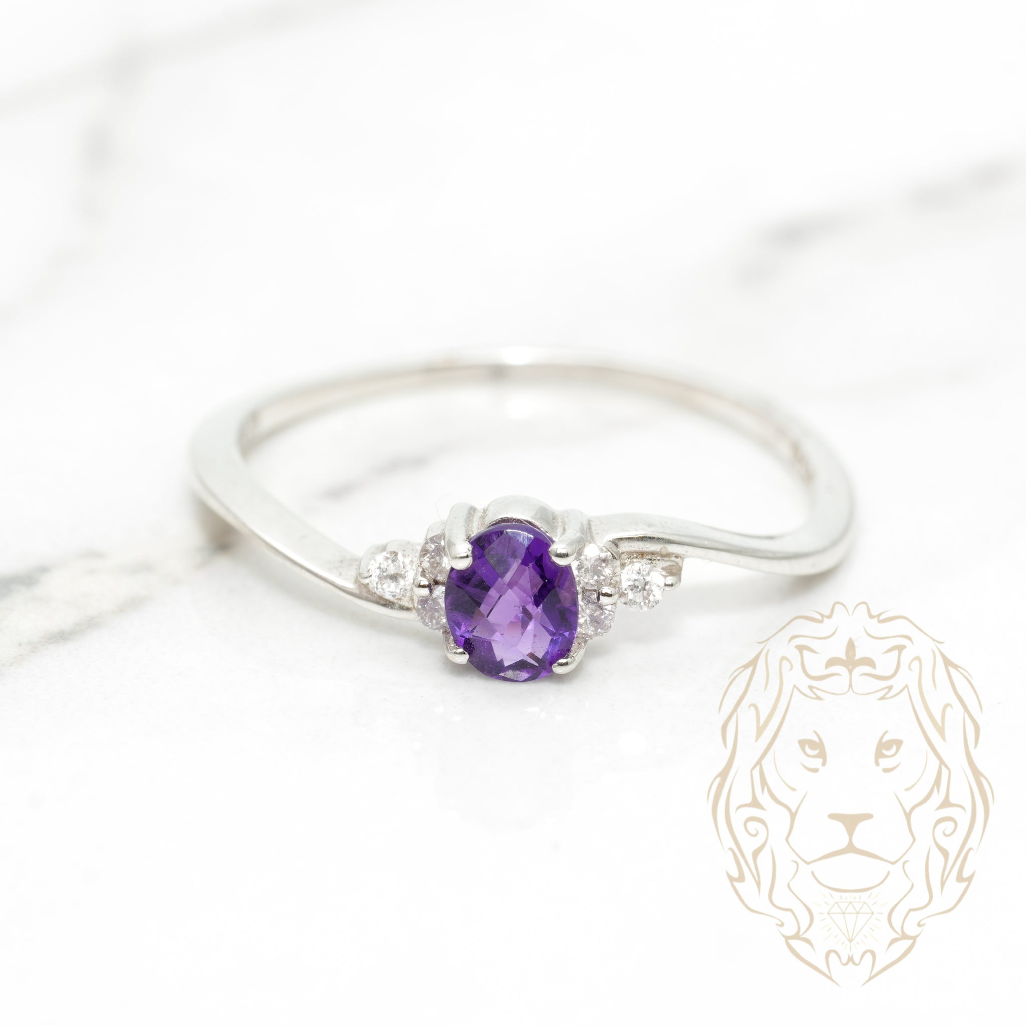 This 18K white gold engagement ring, set with a 0.25CT oval-cut amethyst and 0.06CT natural diamonds, is perfect for a touch of romantic originality.
