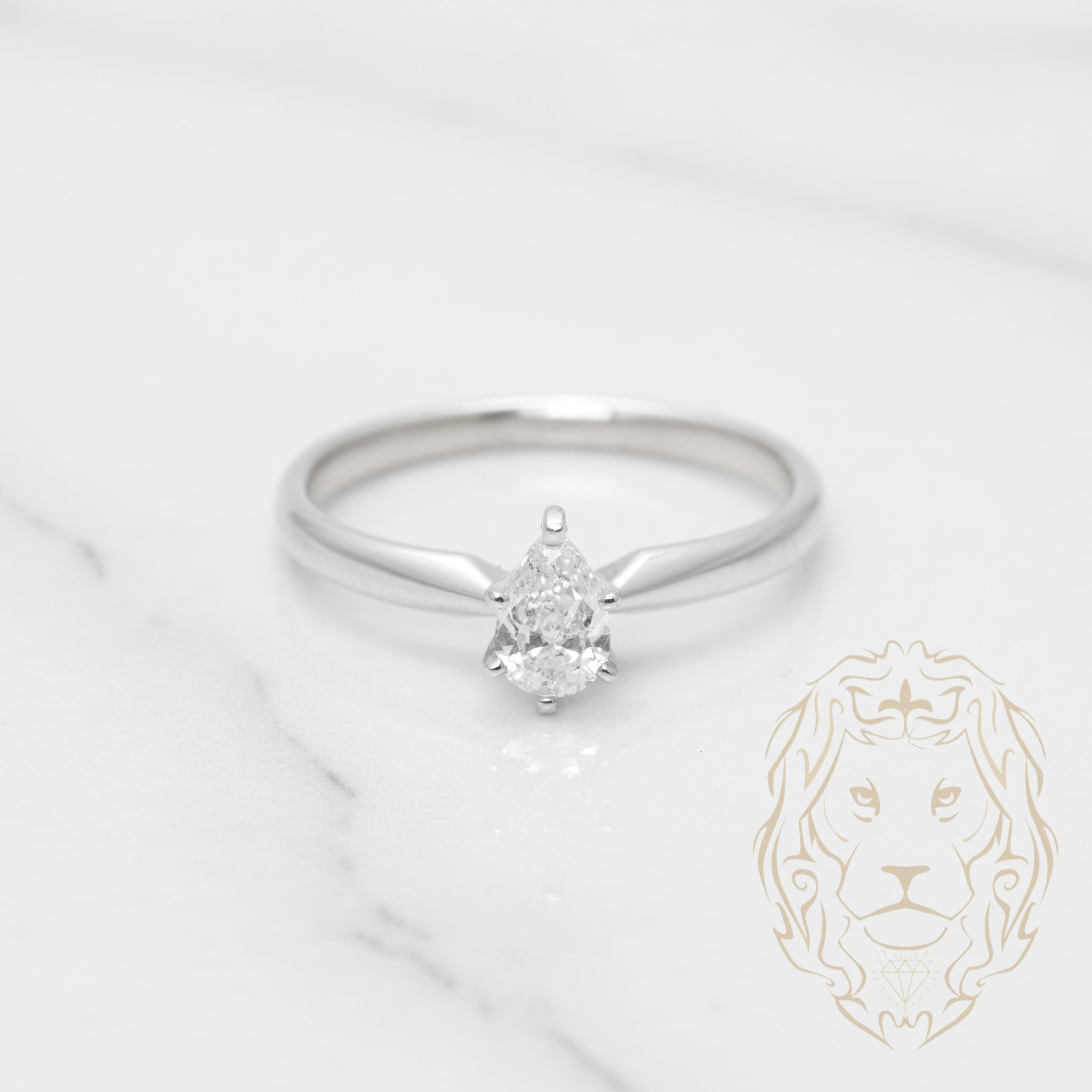 This engagement ring in 14K white gold, set with a 0.35-carat pear-cut natural diamond, is a classic to symbolize your commitment.