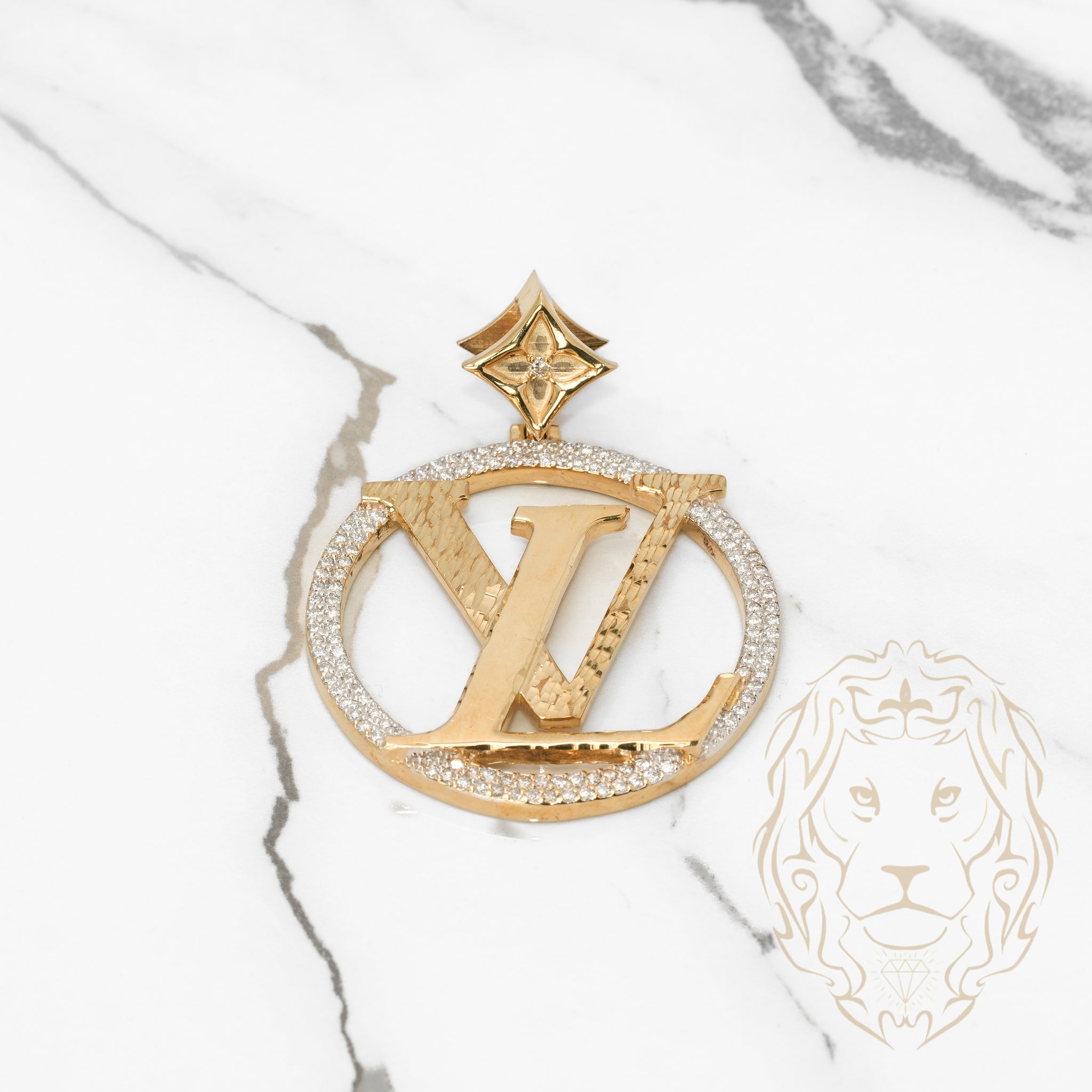 This two-tone (yellow and white) 10K gold pendant embodies the perfect balance between classic refinement and bold modernity. Enhanced by a luxurious diamond cut LV diamond cut and adorned with a sparkling pavé of laboratory-cut diamonds totaling 2.00CT, this jewel catches the light and the eye. Whether you wear it for a special occasion or to enhance your everyday life, it is the symbol of exquisite taste and self-assured confidence.