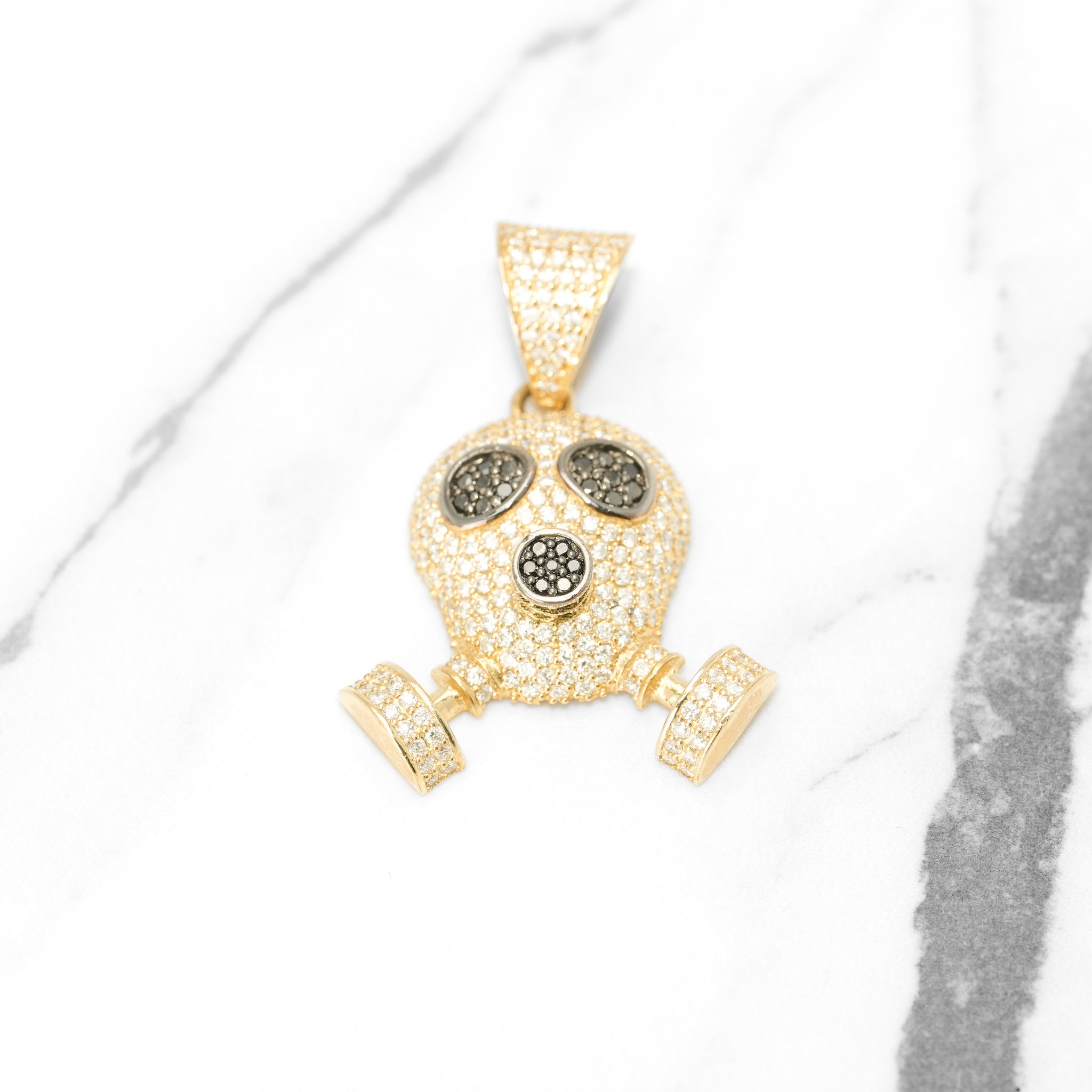 Pendant - 10K yellow gold gas mask paved with natural diamonds - PEGD002